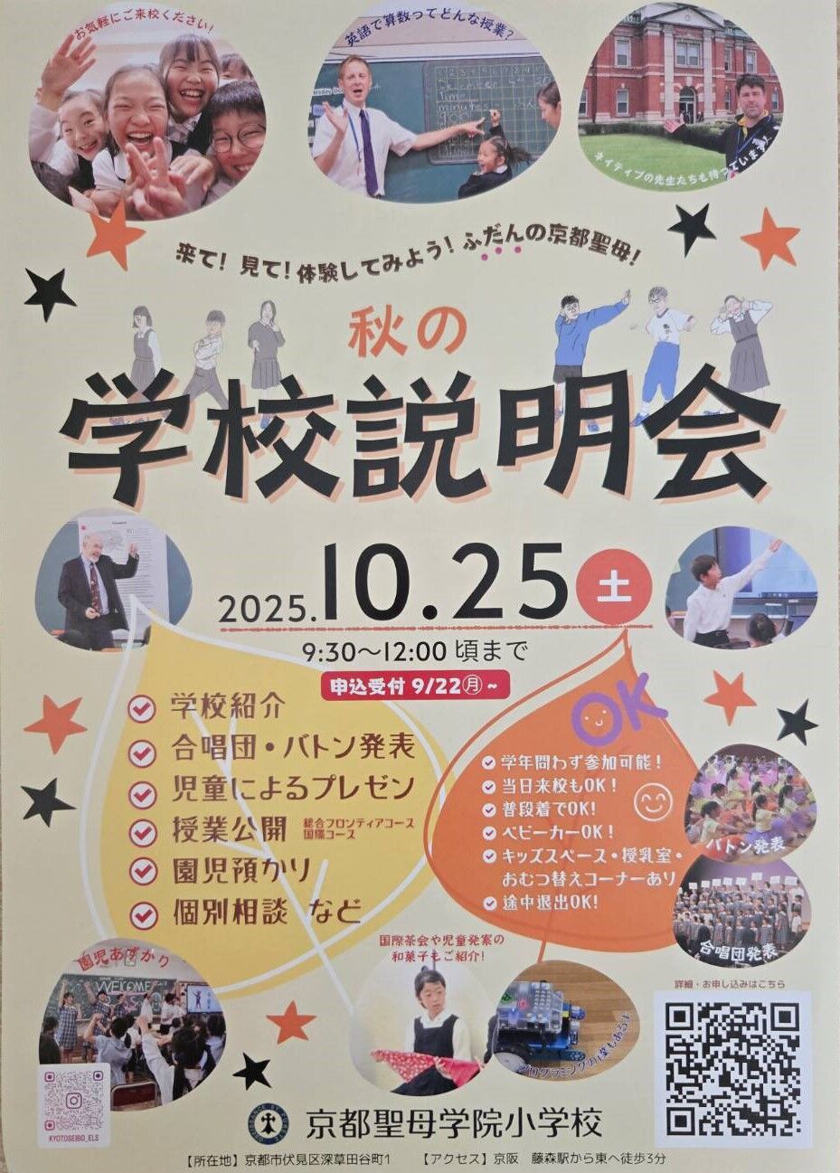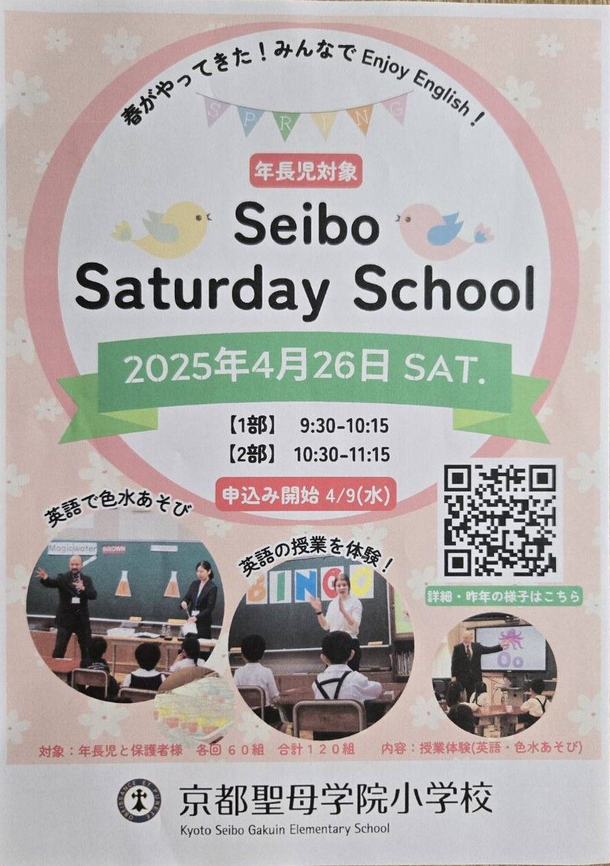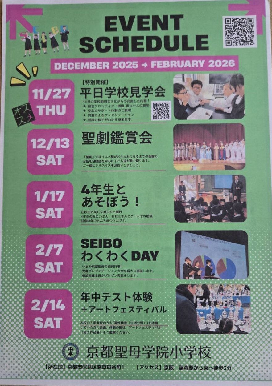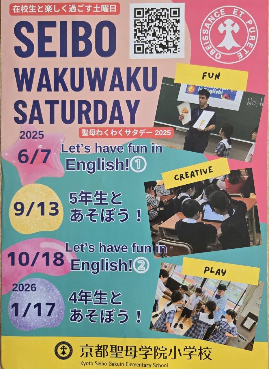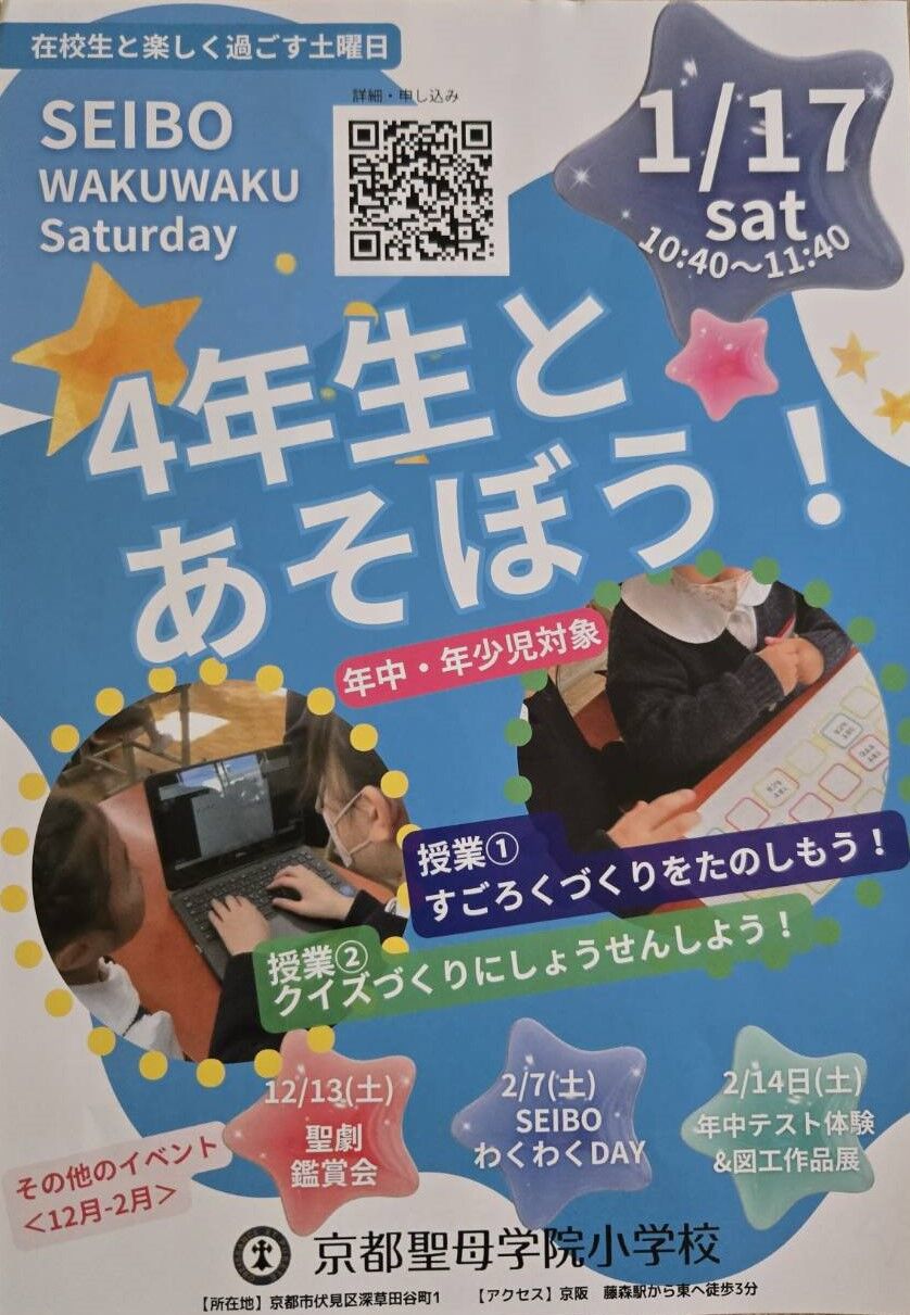 京都市伏見区にあります「京都聖母学院小学校」さんから、2026年2月7日(土)実施予定「第4回 SEIBOわくわくDAY」案内を頂戴しましたので、紹介します。