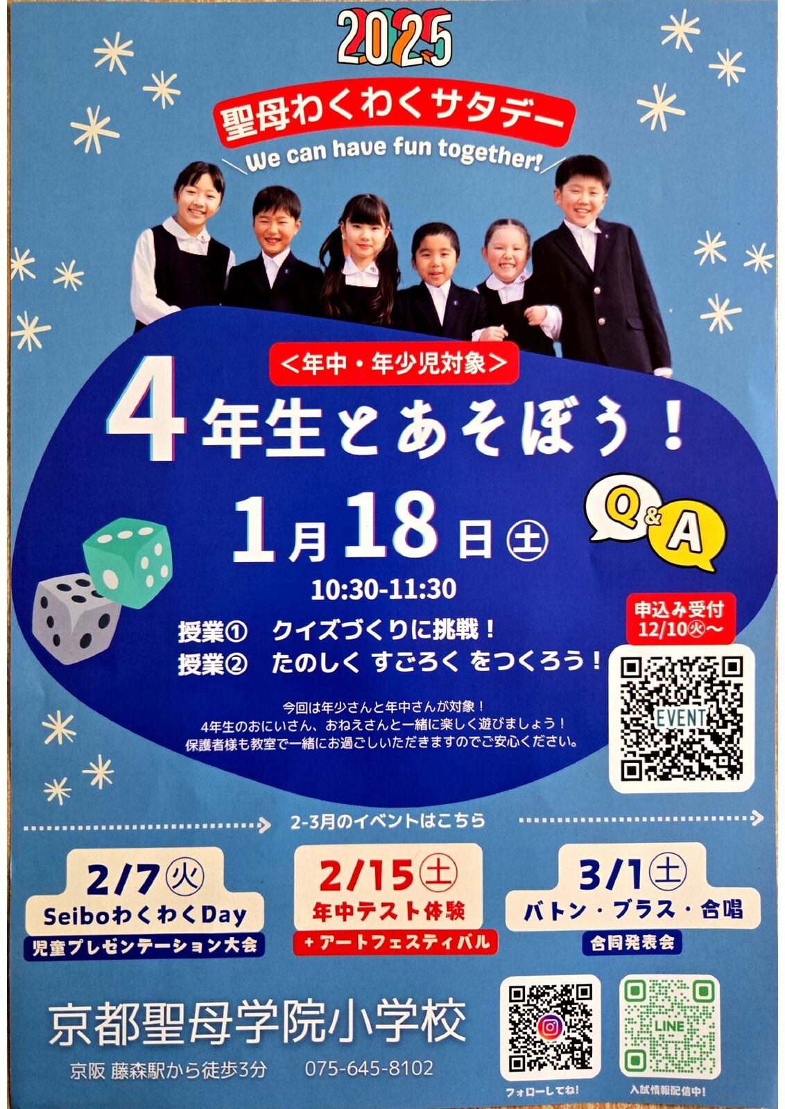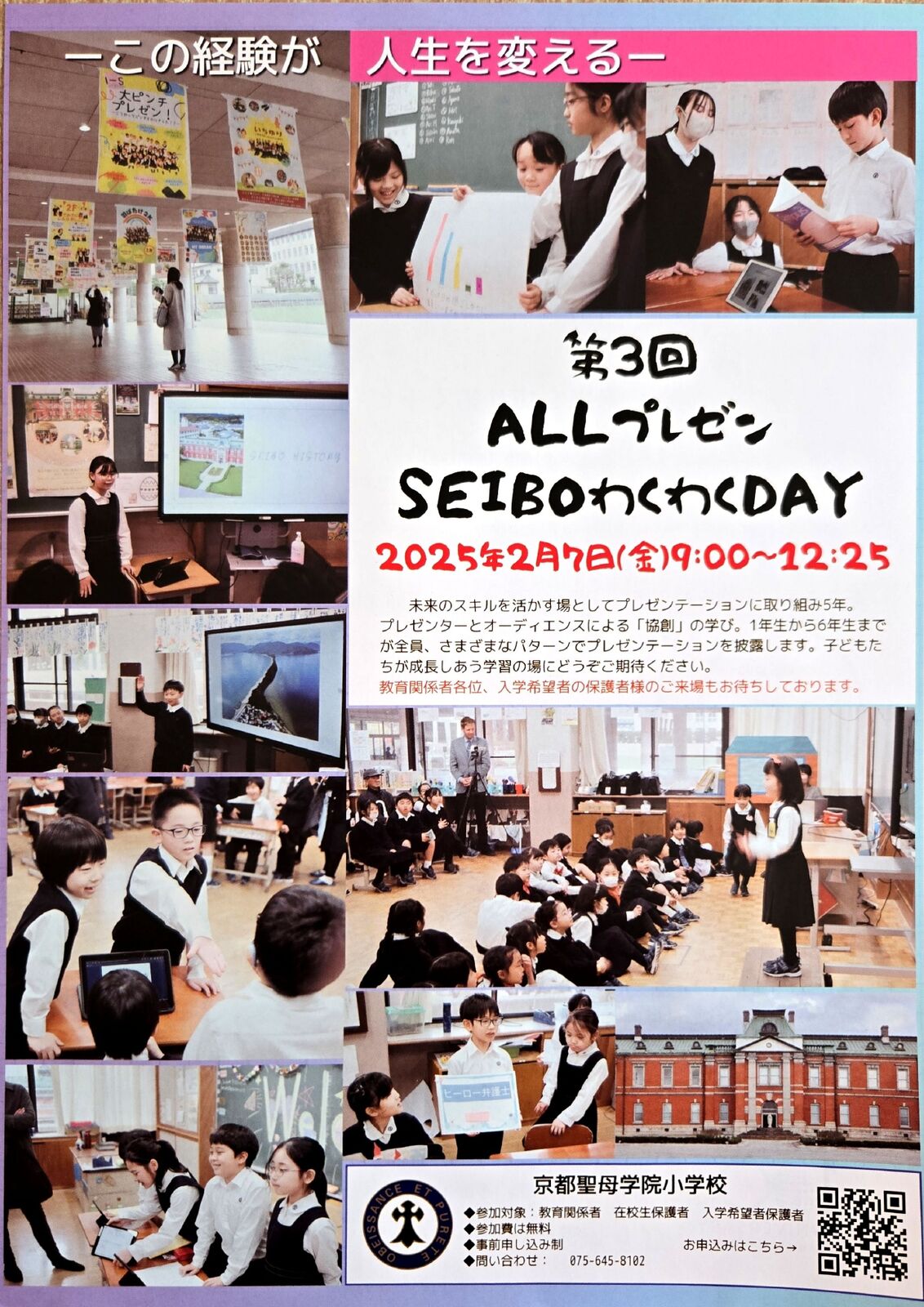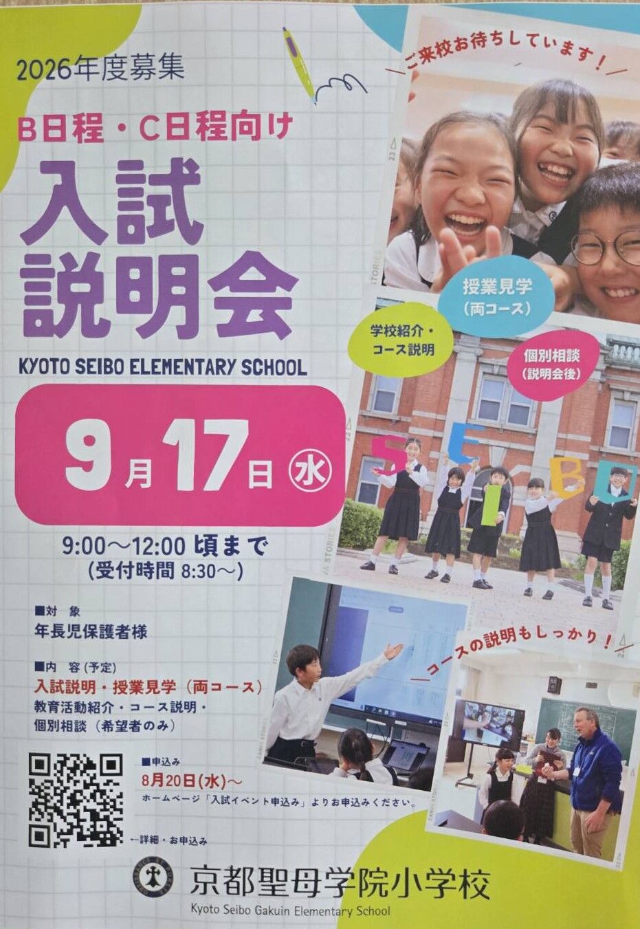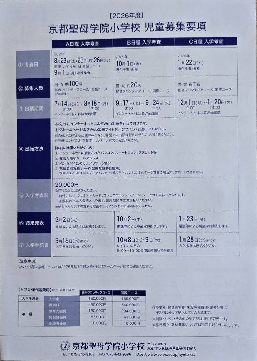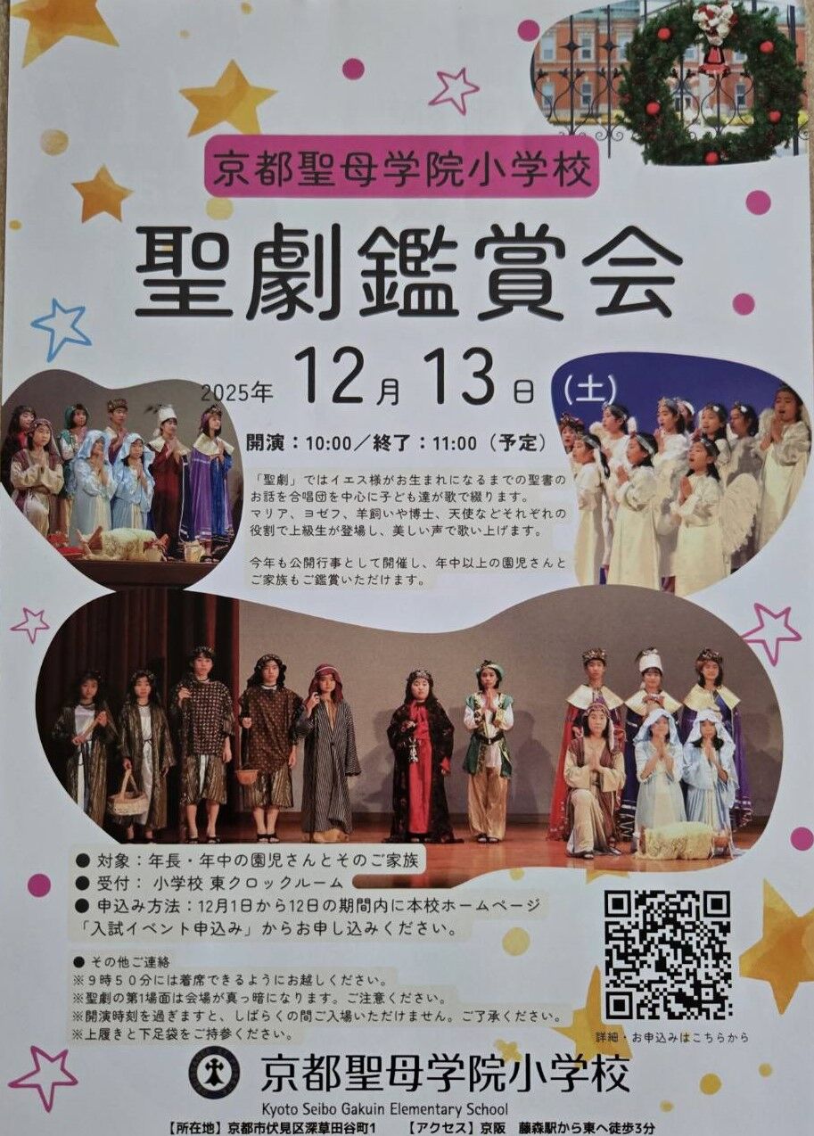 京都市伏見区にあります「京都聖母学院小学校」さんから、2026年2月7日(土)実施予定「第4回 SEIBOわくわくDAY」案内を頂戴しましたので、紹介します。