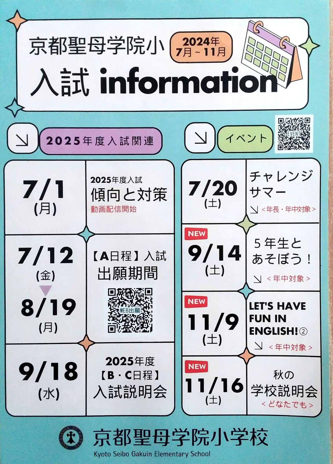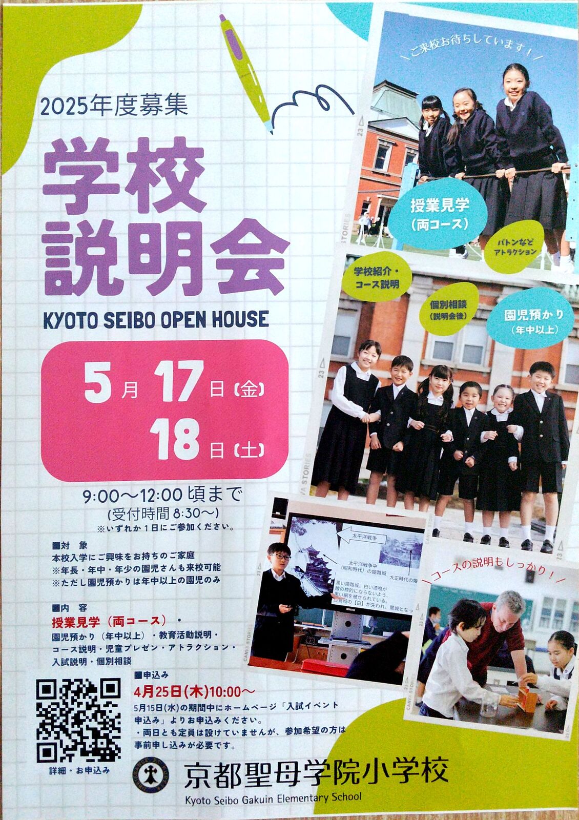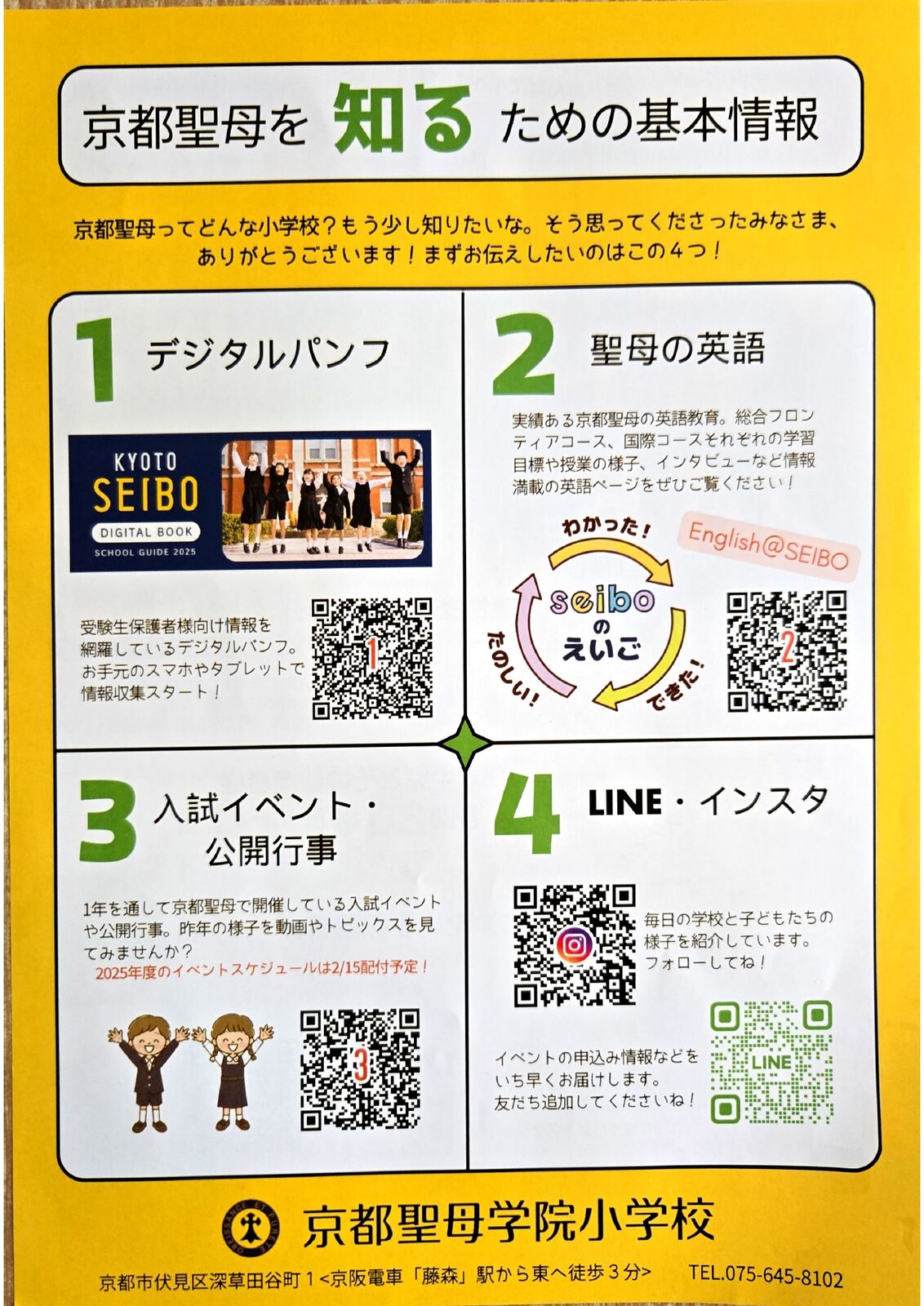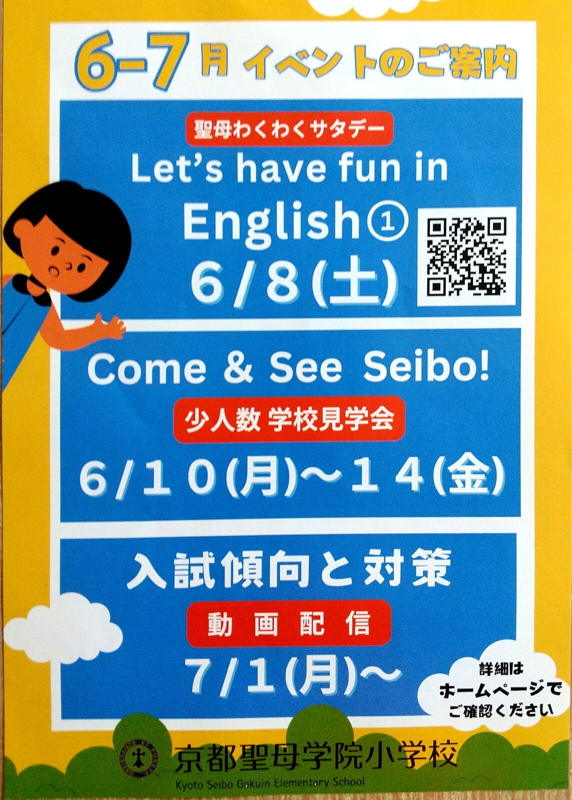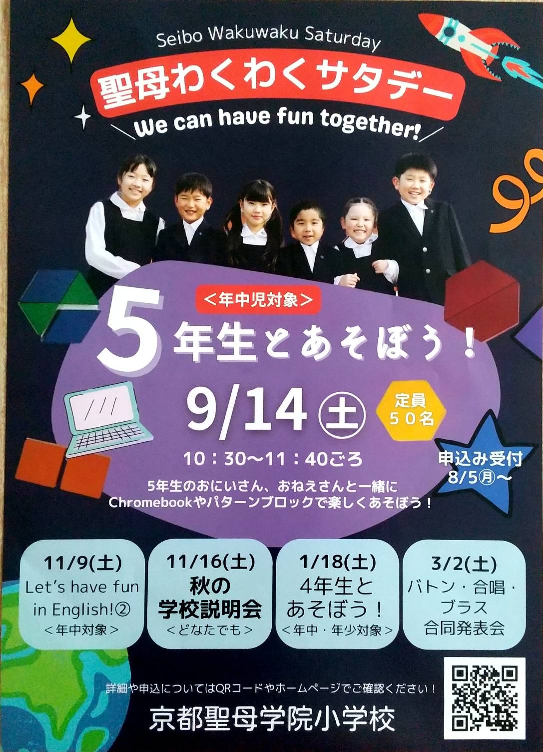 京都市伏見区にあります「京都聖母学院小学校」さんから、2026年2月7日(土)実施予定「第4回 SEIBOわくわくDAY」案内を頂戴しましたので、紹介します。