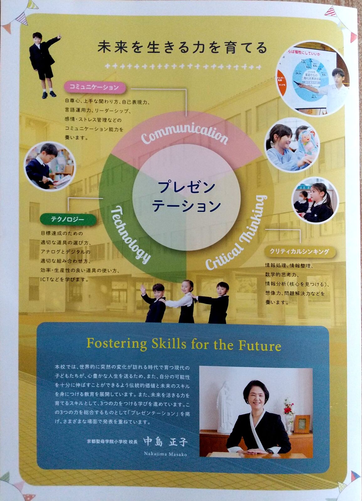 子どもたちからは「プレゼンが終わりではない。実践してい行かなければいけない。」という声が聞こえます。その声こそが、京都聖母が目指すプレゼンテーションです。」