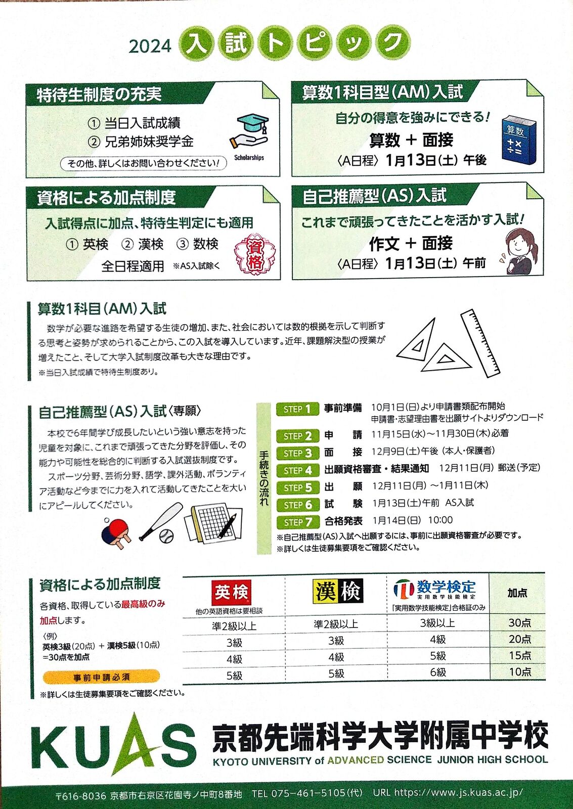 本年度より2科目(国・算)でも判定を行います! 事前申込制