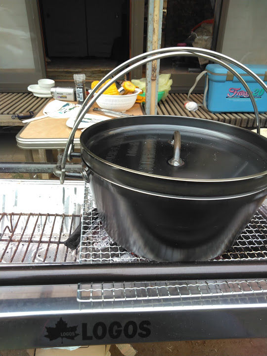 で、戻ってきて、早速準備。新アイテムのダッチオーブンで