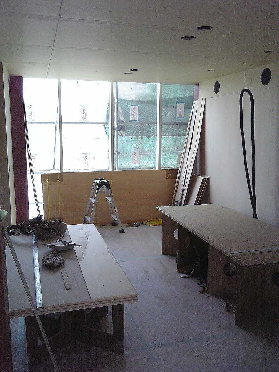 写真は明日,いち早く搬入するピアノのための借り落としぶた。(笑)