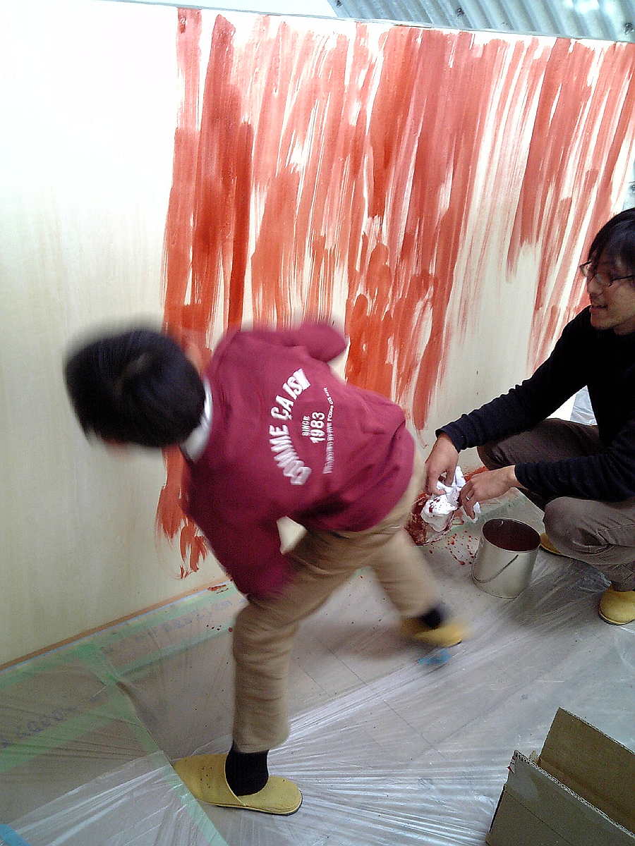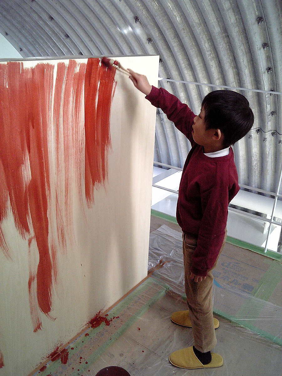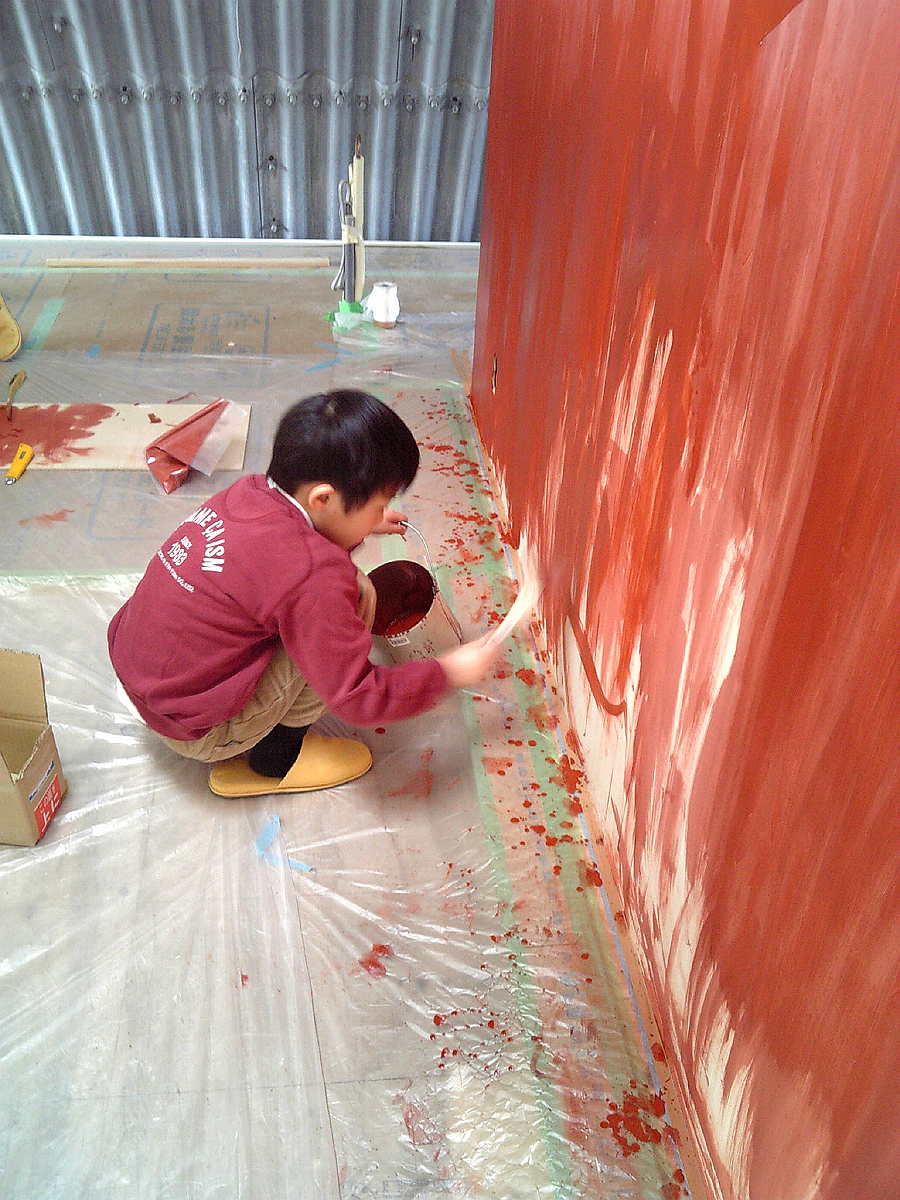 この写真だけでは,息子が一人で塗り上げたように見えるが