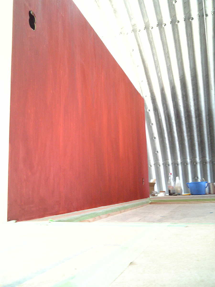 柿渋にベンガラを足して塗りましたが、ふつうのペンキがアクリルだとすると