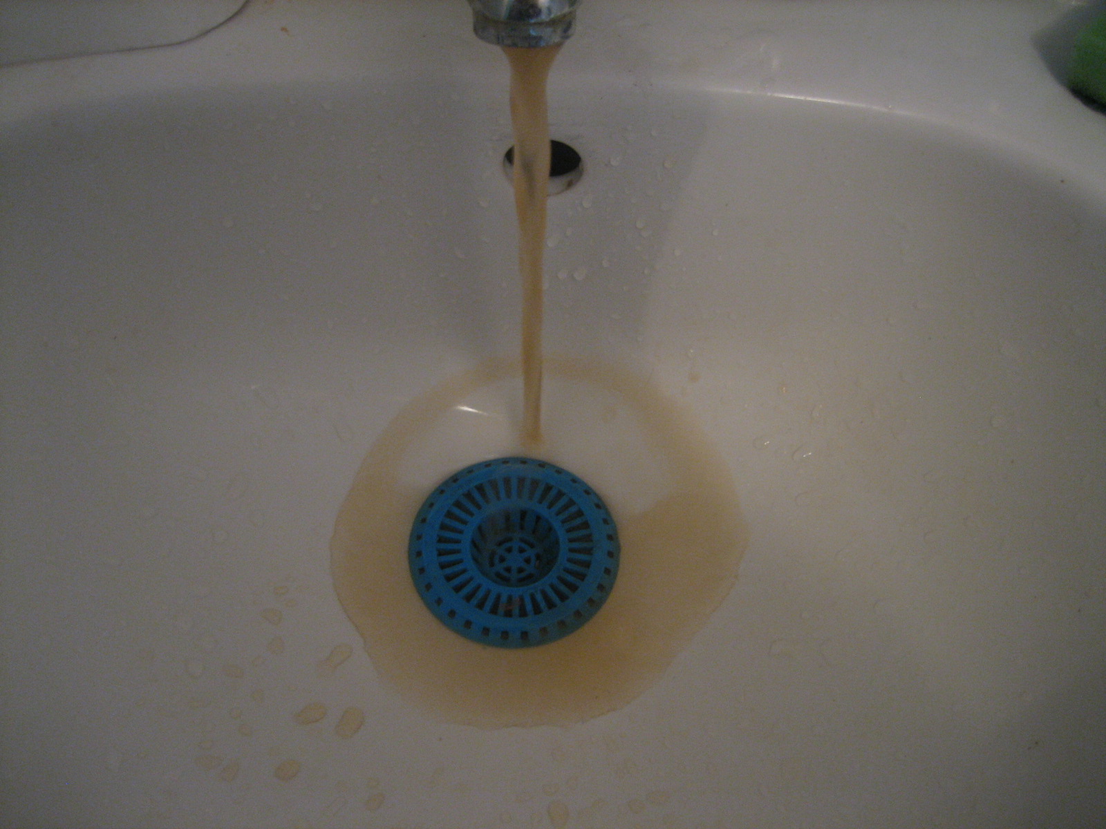 ロシアではお湯が出なかったり、写真のような水が出ても、平然と生活をしなくてはいかんのだ。
