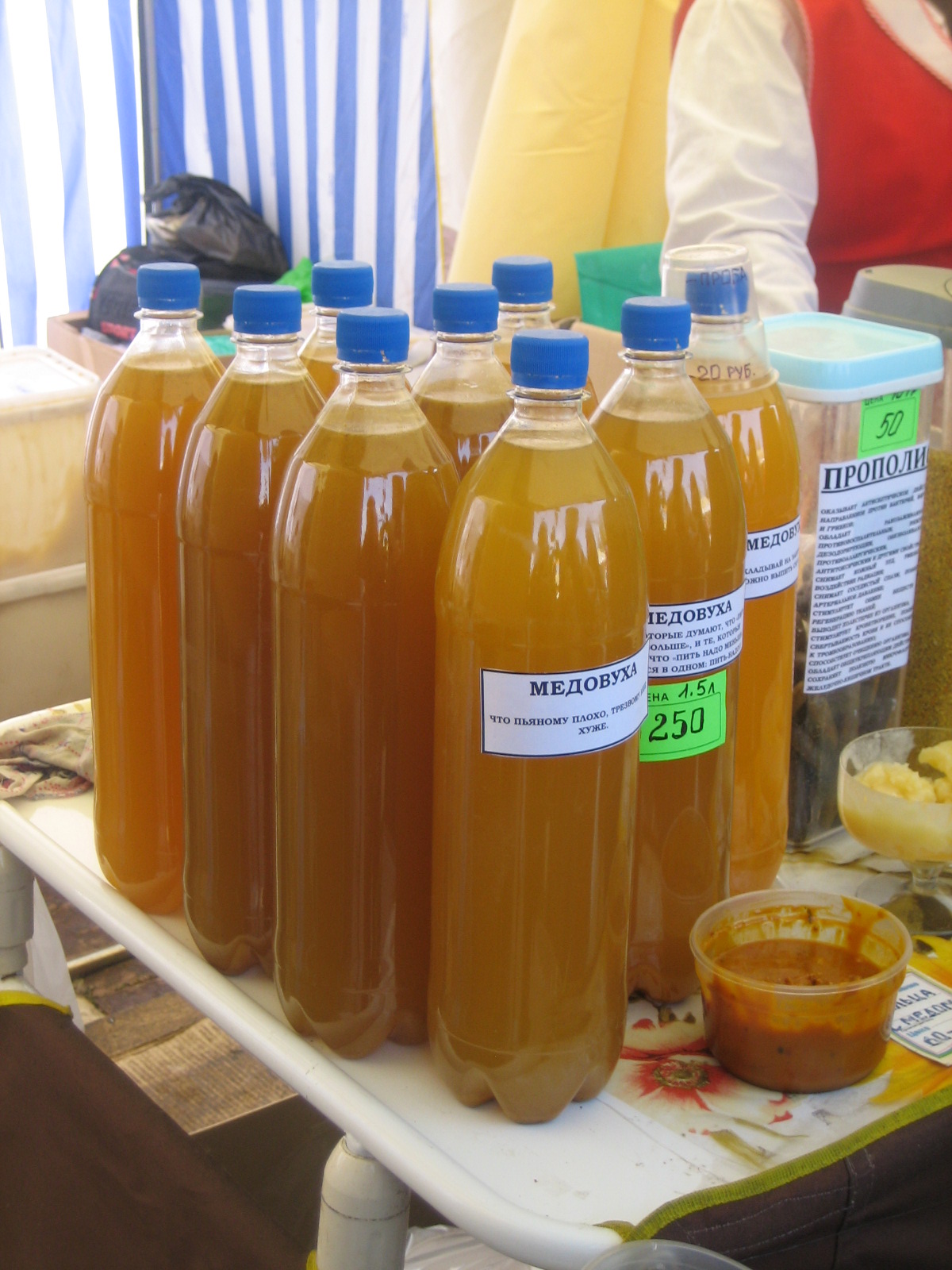 で、この飲み物は蜂蜜酒「メドブーハ」。