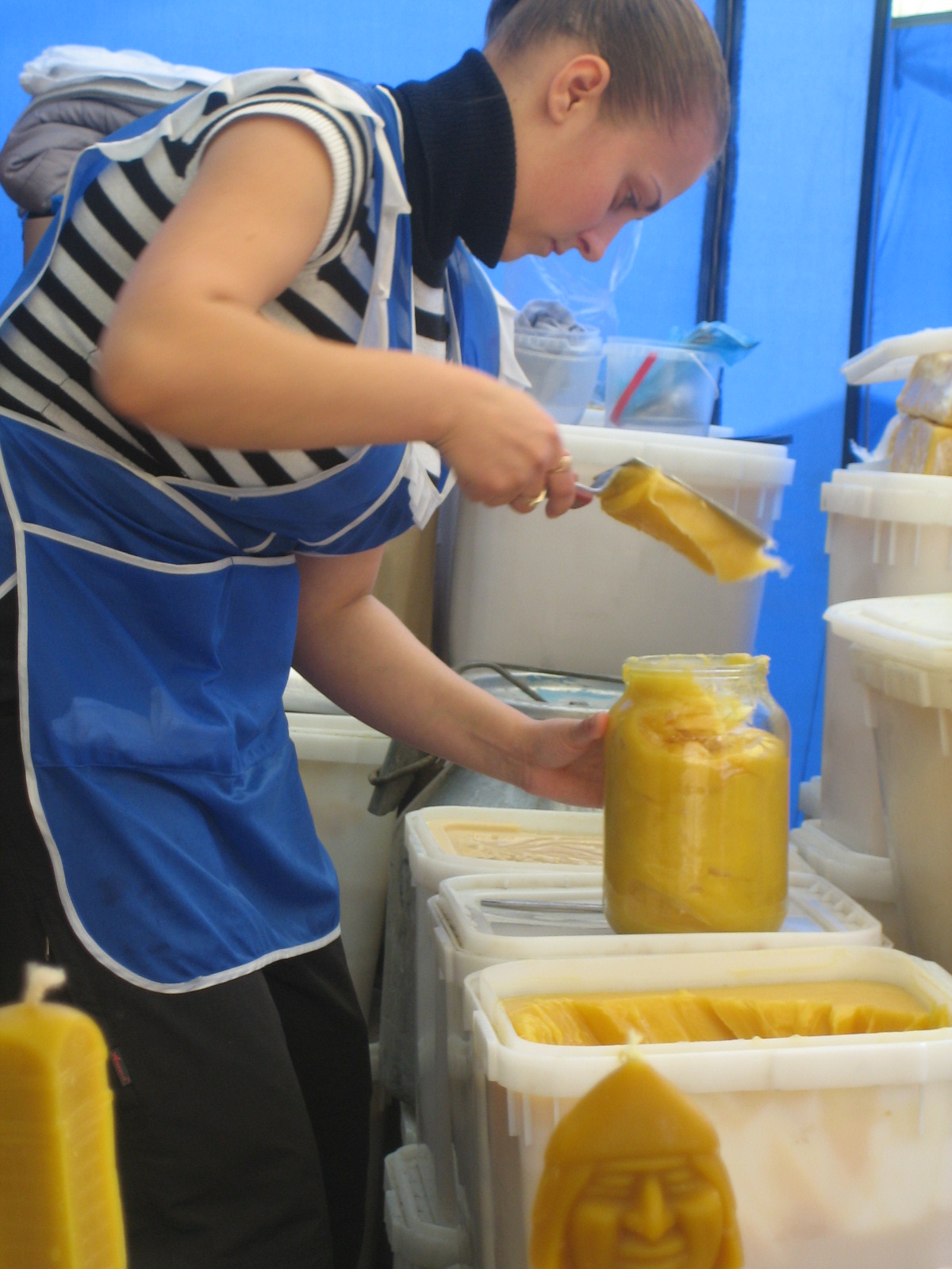 ハチミツ市は、ロシア中から養蜂業者が集まって自慢の蜂蜜を販売します。