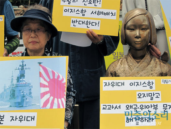 日本自衛隊イージス艦の西海(ソヘ、黄海)配置推進の動きに市民団体が強力に反発した。