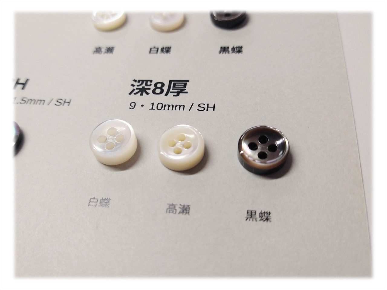 厚みが最もベーシックな貝ボタンです。