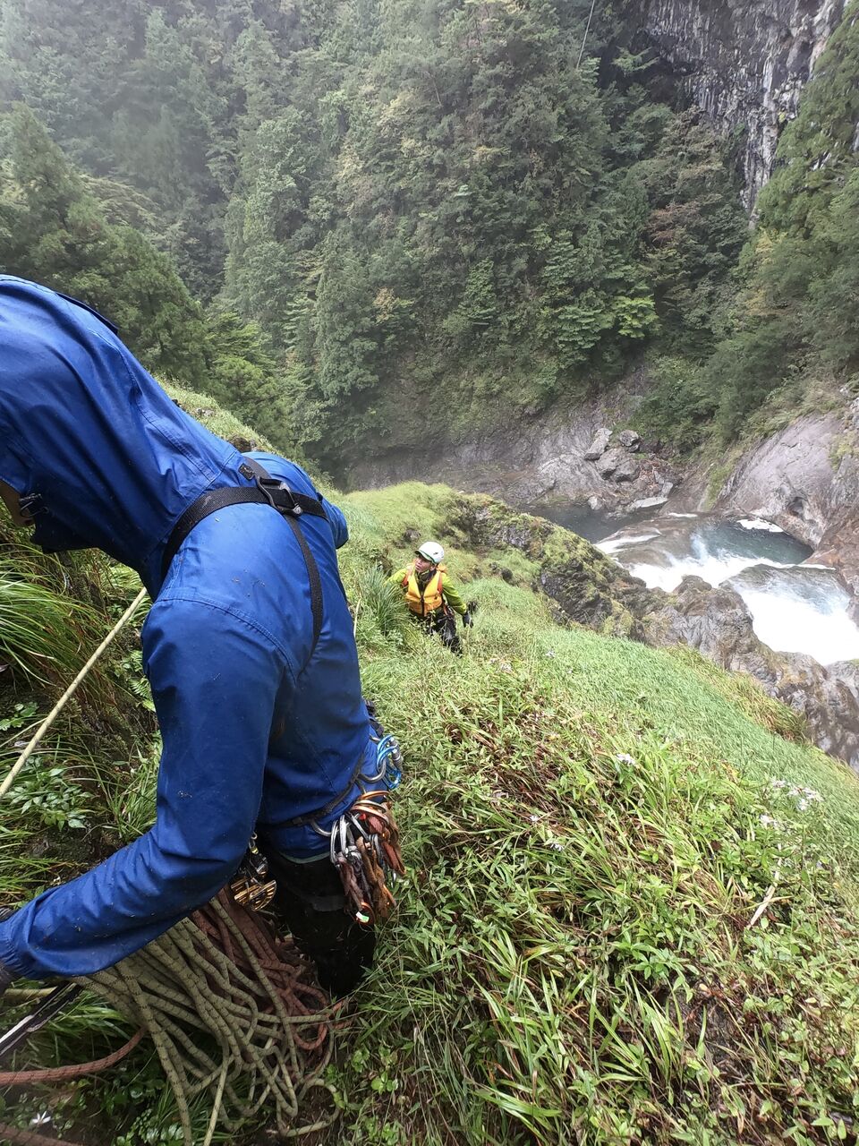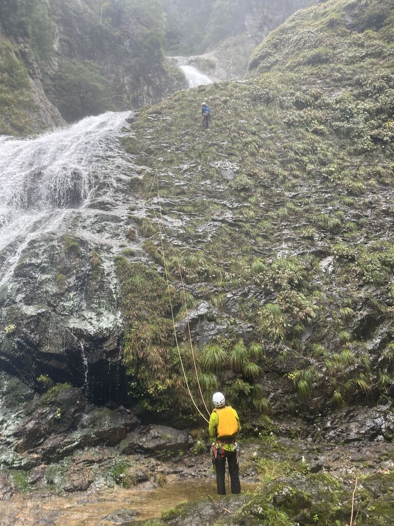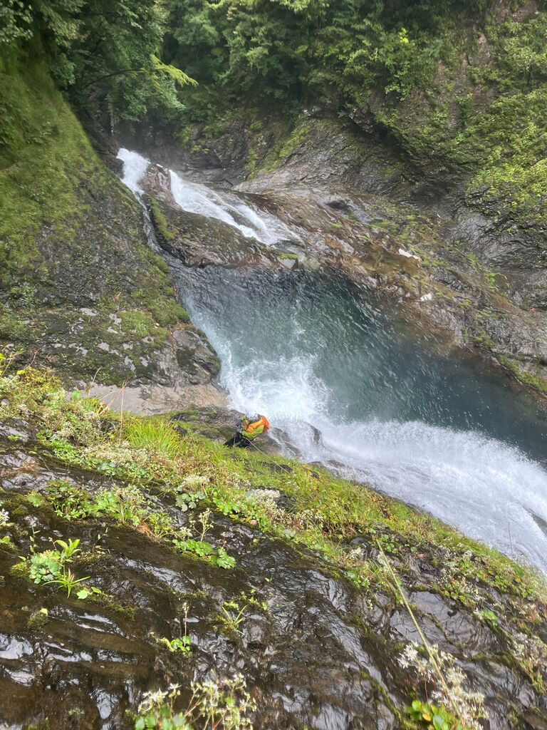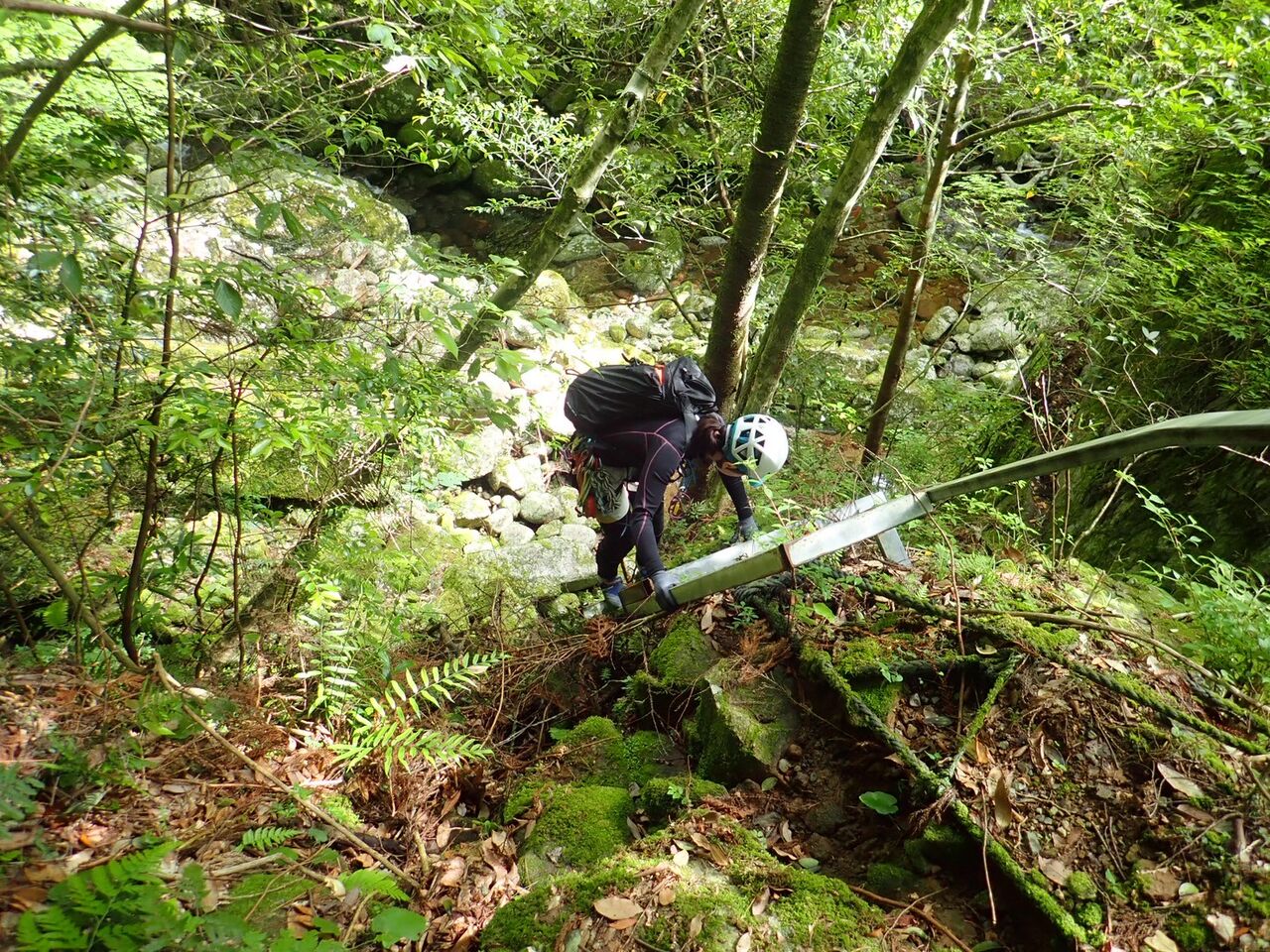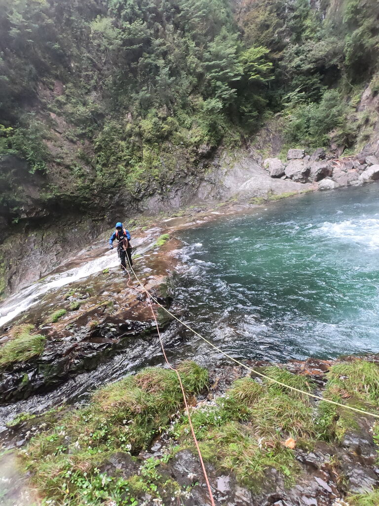 大西さんは3年間この谷に通った。1年目はボートを使用して突破した。その時に橋をかけれそうなところを見つけ、次の年に橋をかけたそうだ。