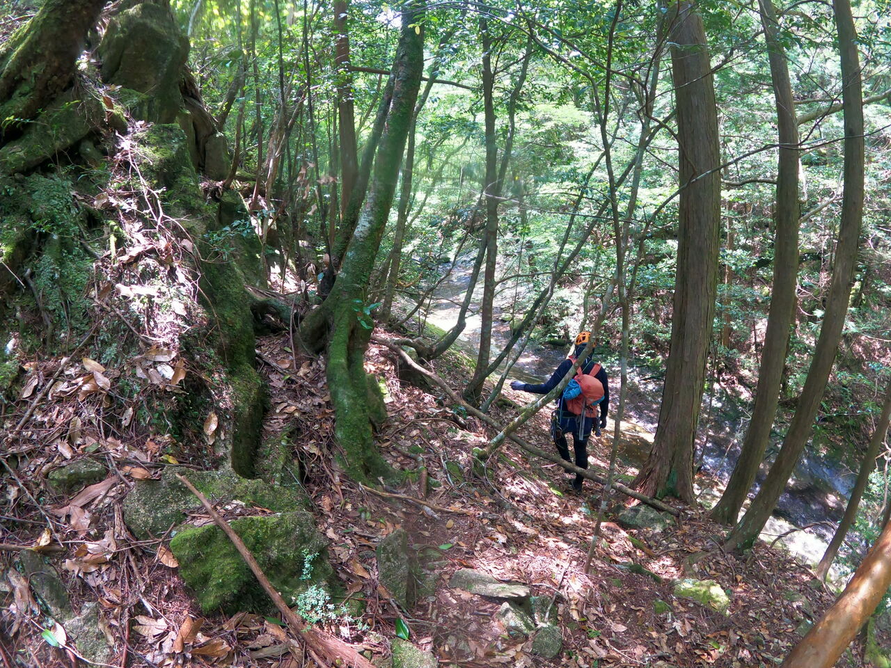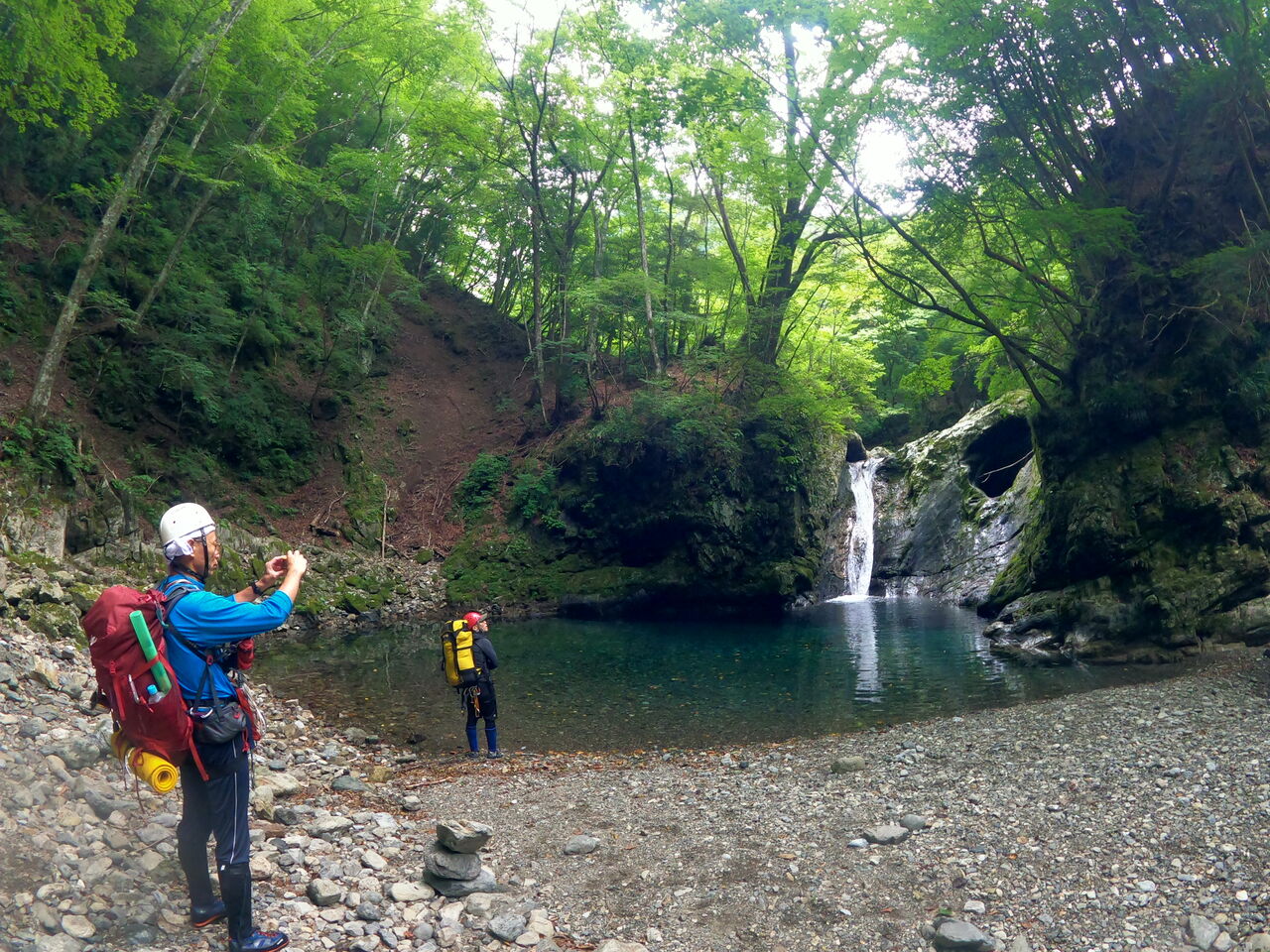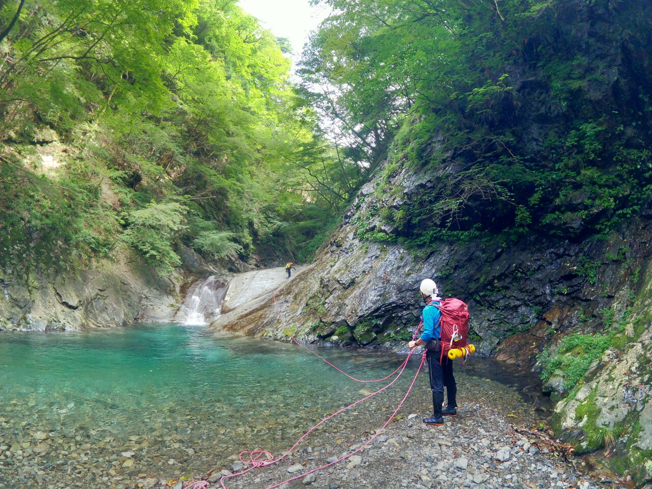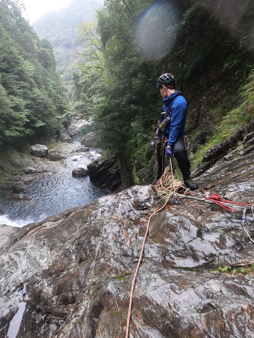 大西さんは3年間この谷に通った。1年目はボートを使用して突破した。その時に橋をかけれそうなところを見つけ、次の年に橋をかけたそうだ。