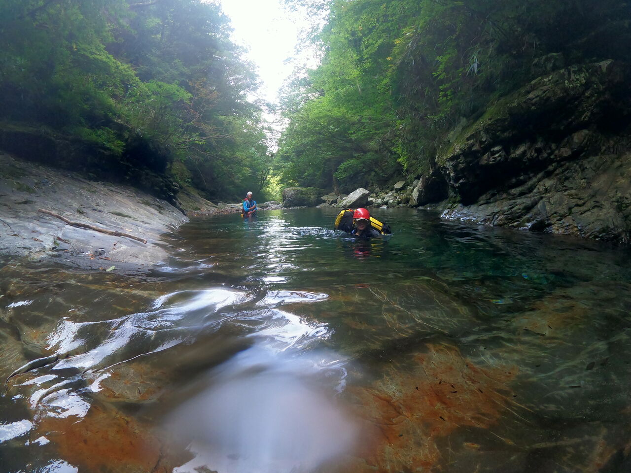 合流できて喜んでいたら、和んた空気を感じた酔っ払いが雄大に抱きつき、水たまりに落としていた。