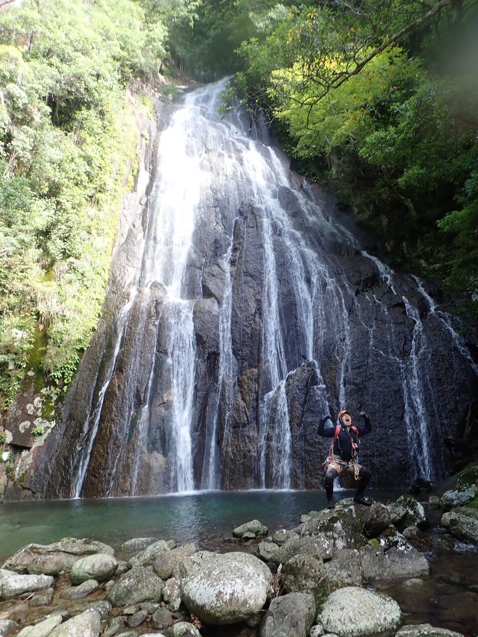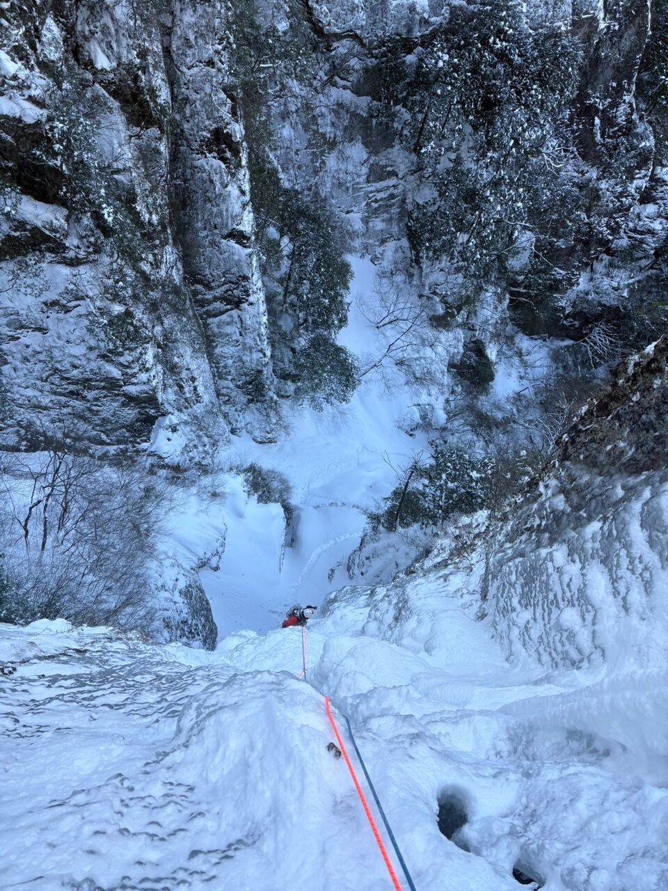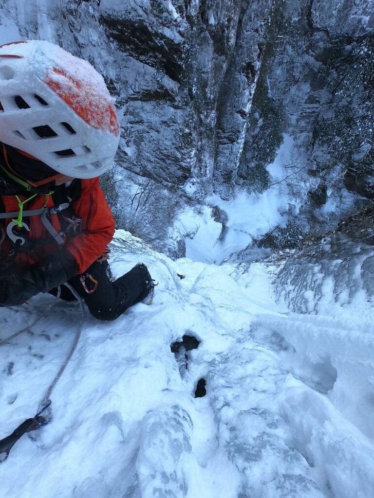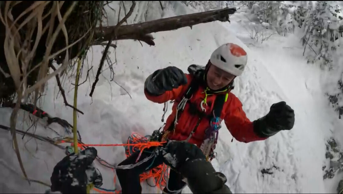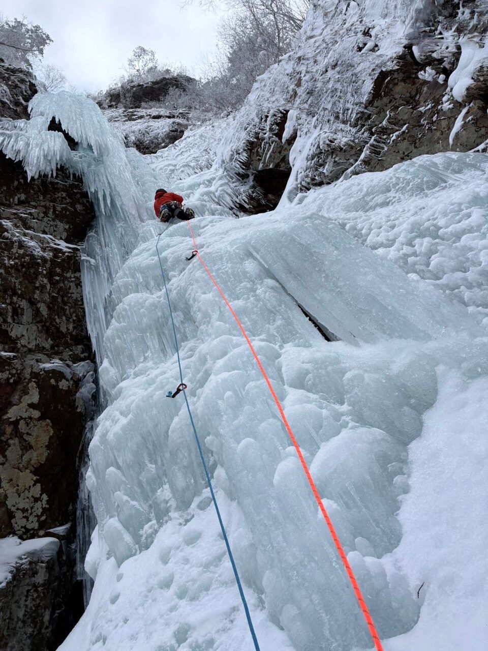 雄大がとても格好良い写真を撮ってくれたが、これは奇跡の一枚で、この後すぐ落ちた。でもいつかこのハングした氷も登れるようになりたい。