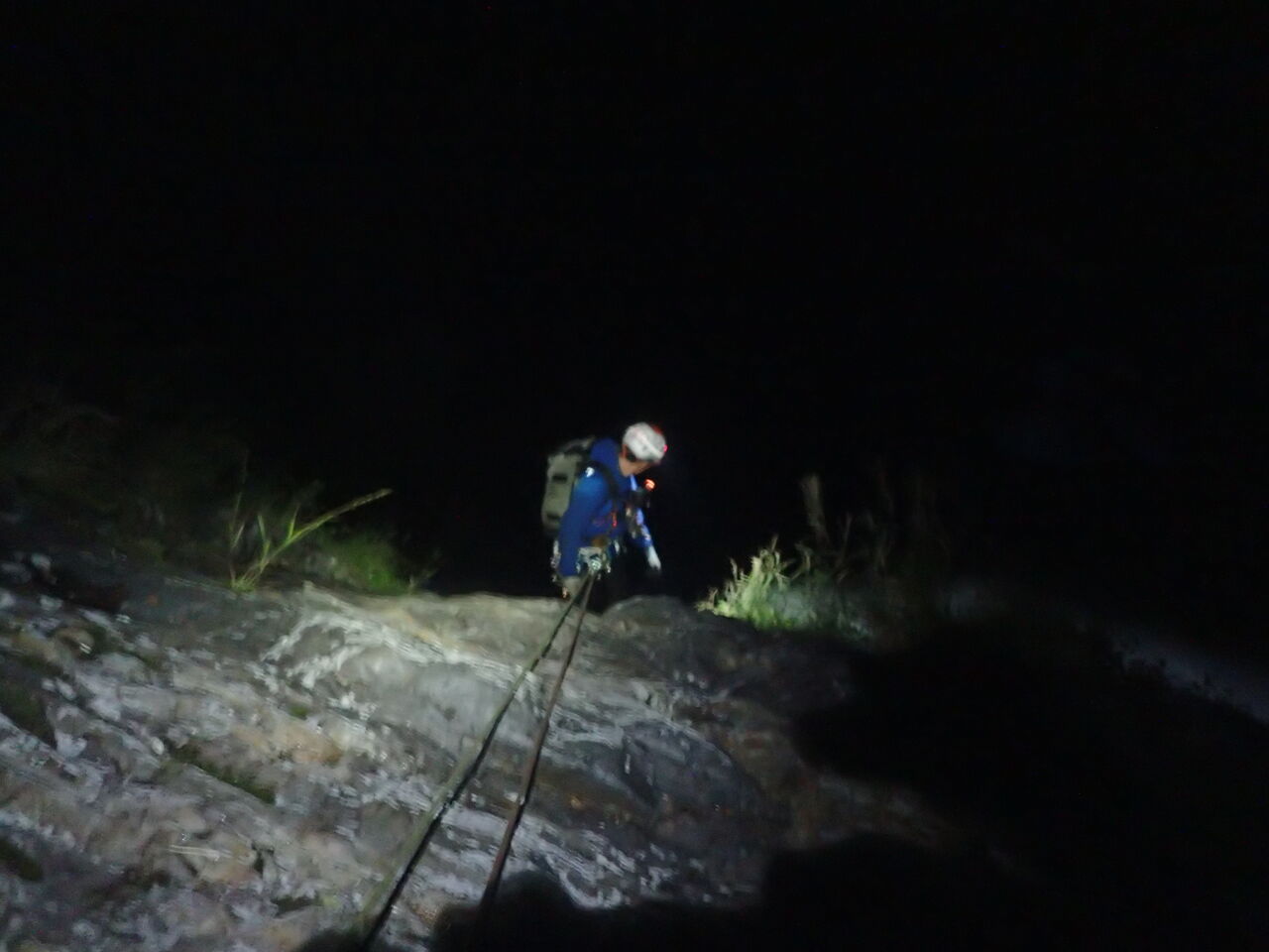 しかしこの人、ベロンベロンに酔っ払っていて千鳥足もいいことろだ。足を滑らせてばかりで、最初は事故りそうで怖かったが、それでも僕らより速く歩いていた。暗い中でも豆電球のような明かりだけで転がるような速さで降りていく。というか千鳥足のため止まれず草むらに突っ込んで本当に転がっていた。「水があるから浴びよう!」と言って泥に頭を突っ込んでいた。