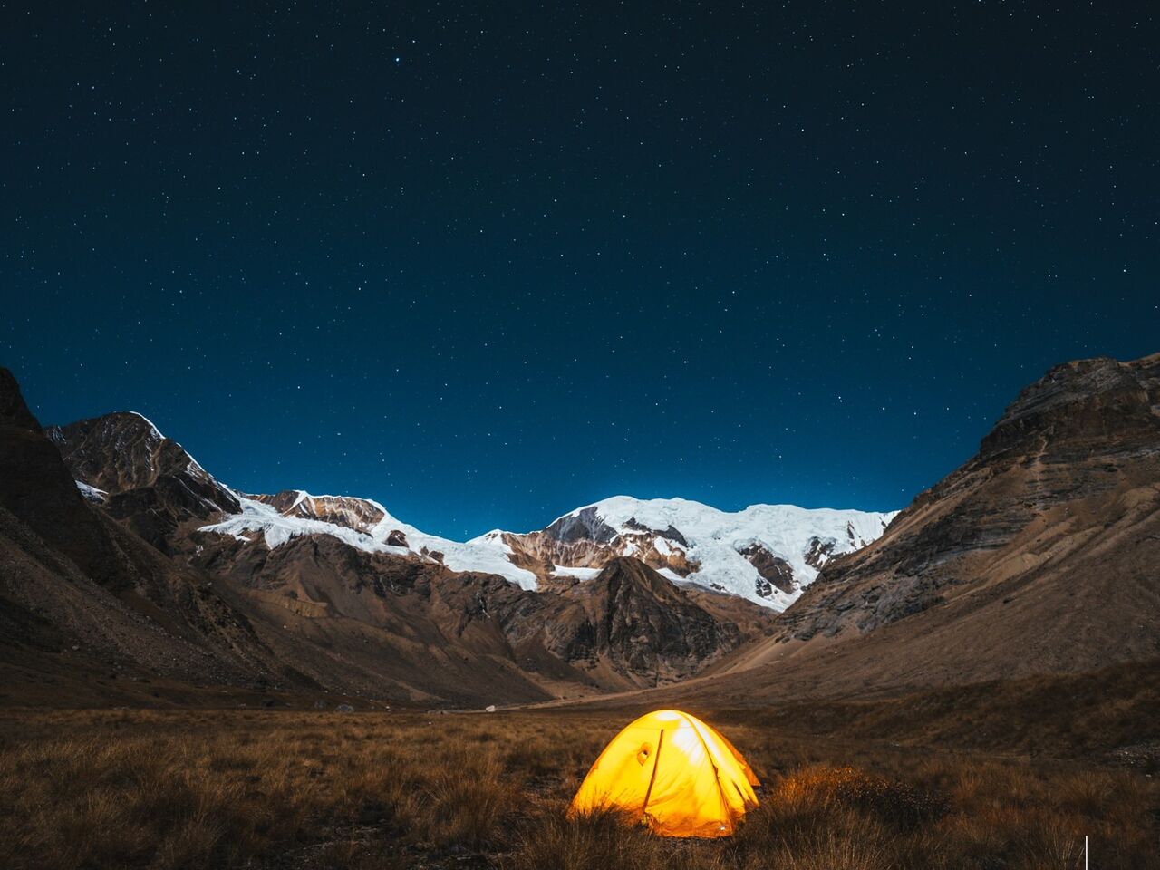 登頂後も、ポーターは予定していた日(10月28日)まで来ないため、ベースキャンプで悠々自適に過ごした。ベースキャンプはエアポート平原と呼ばれている。その名のとおり、小型飛行機なら余裕で離着陸できるほどの広い平原だった。6000m級の山々に囲まれ、小川(つまり飲み水)もある。標高4600mで空気は下界の半分ほど、周囲50kmに村はなく、明かりもチリもない。星空が格別であった。