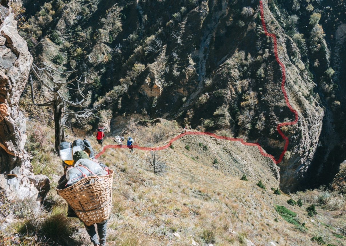 だがここで大きな問題も起きた。予定していた道には行きたくないと、ポーターたちが言い始めた。確かに危険な道だと思っていた。途中で5400mの急な峠を越える必要がある。そこが本遠征の一番の難所だとも考えていた。しかし、ポーターたちが提案した道は、50年前の記録では突破不可能とされた道であった。何を言っているのか分からないまま、ポーターたちに命運を預けることとした。