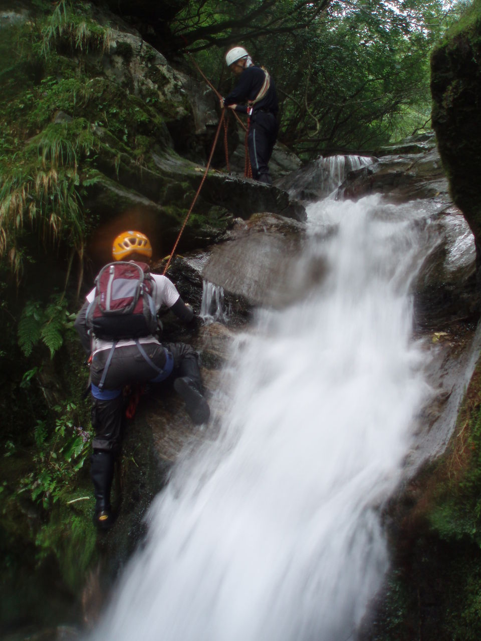 違い、登ってみると結構きつい。Uさんは滝ごとに長シュリンゲで確保する。