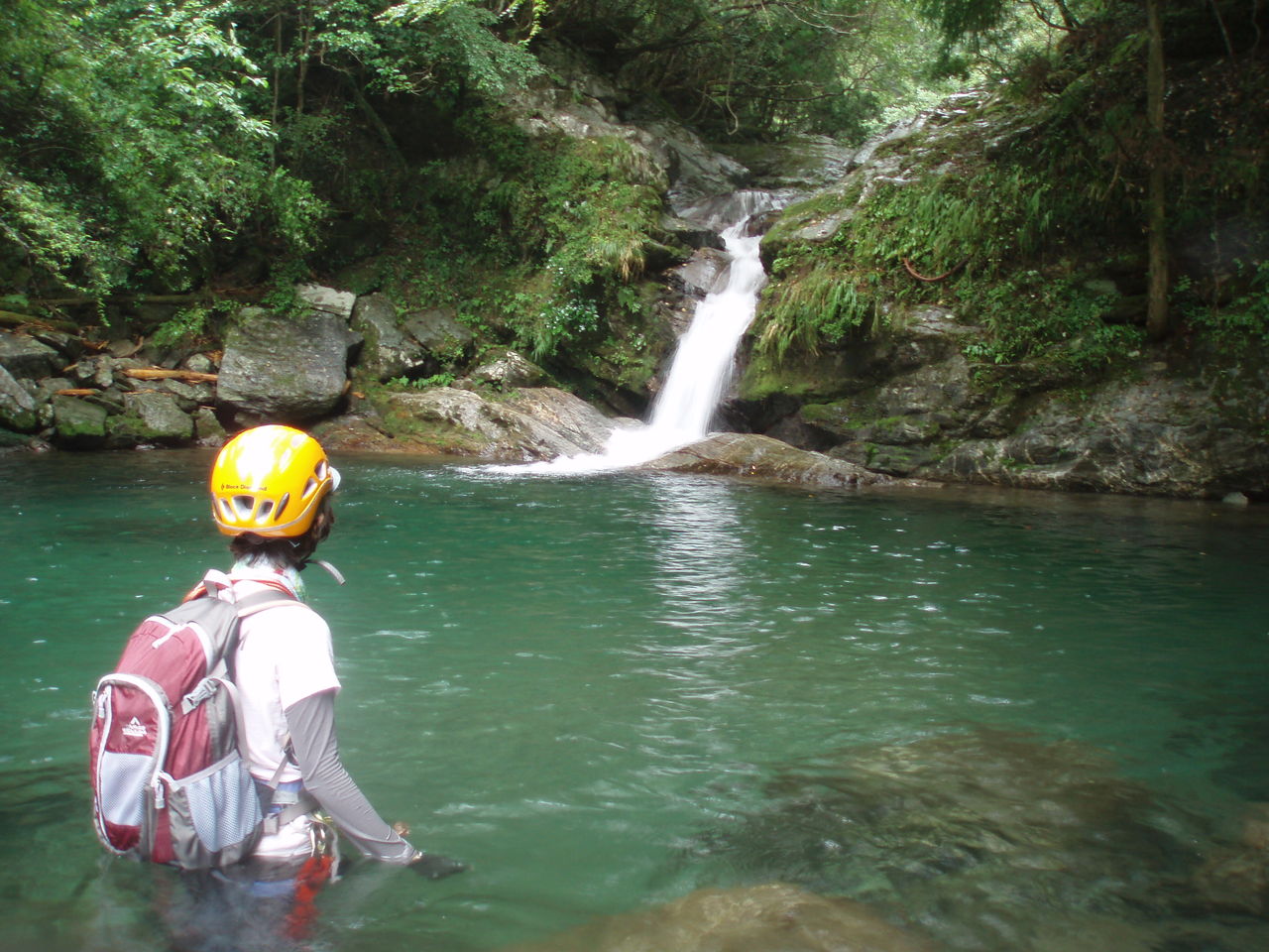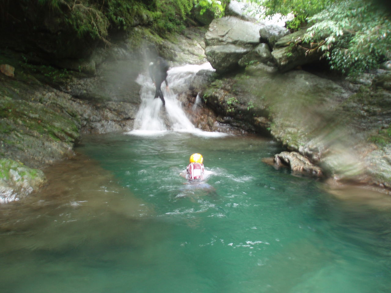 早速泳いで取り付くが、水は冷たくなく、快適だ。その後も次々と小滝が出てくる。