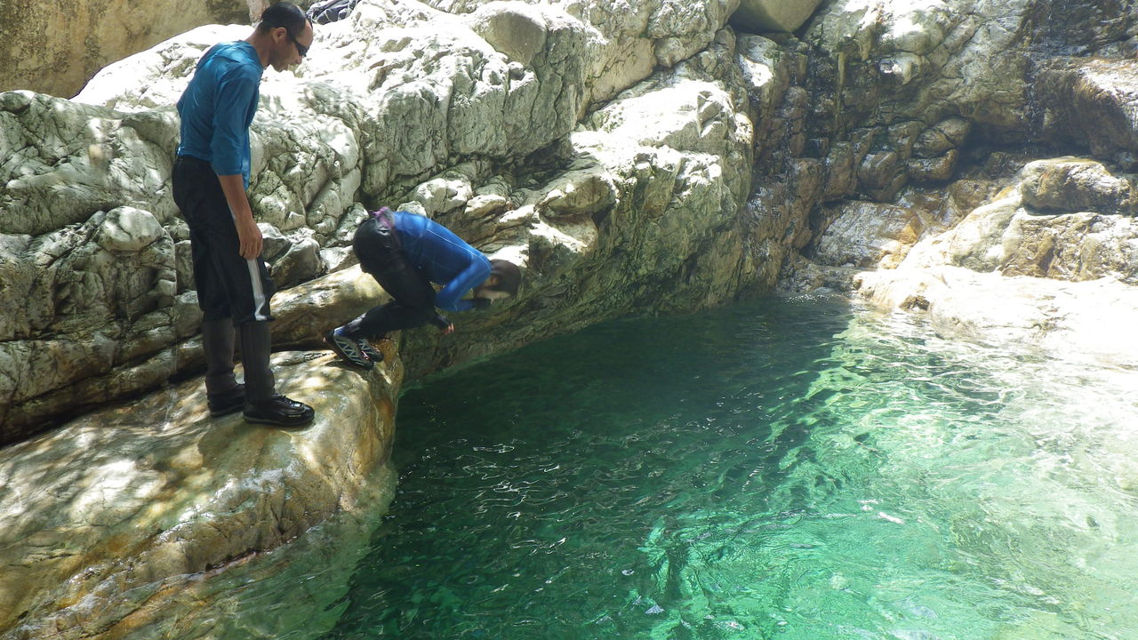 混んでいるかとも思ったがそれほどでもなく、50を過ぎて滝つぼへ飛び込んで