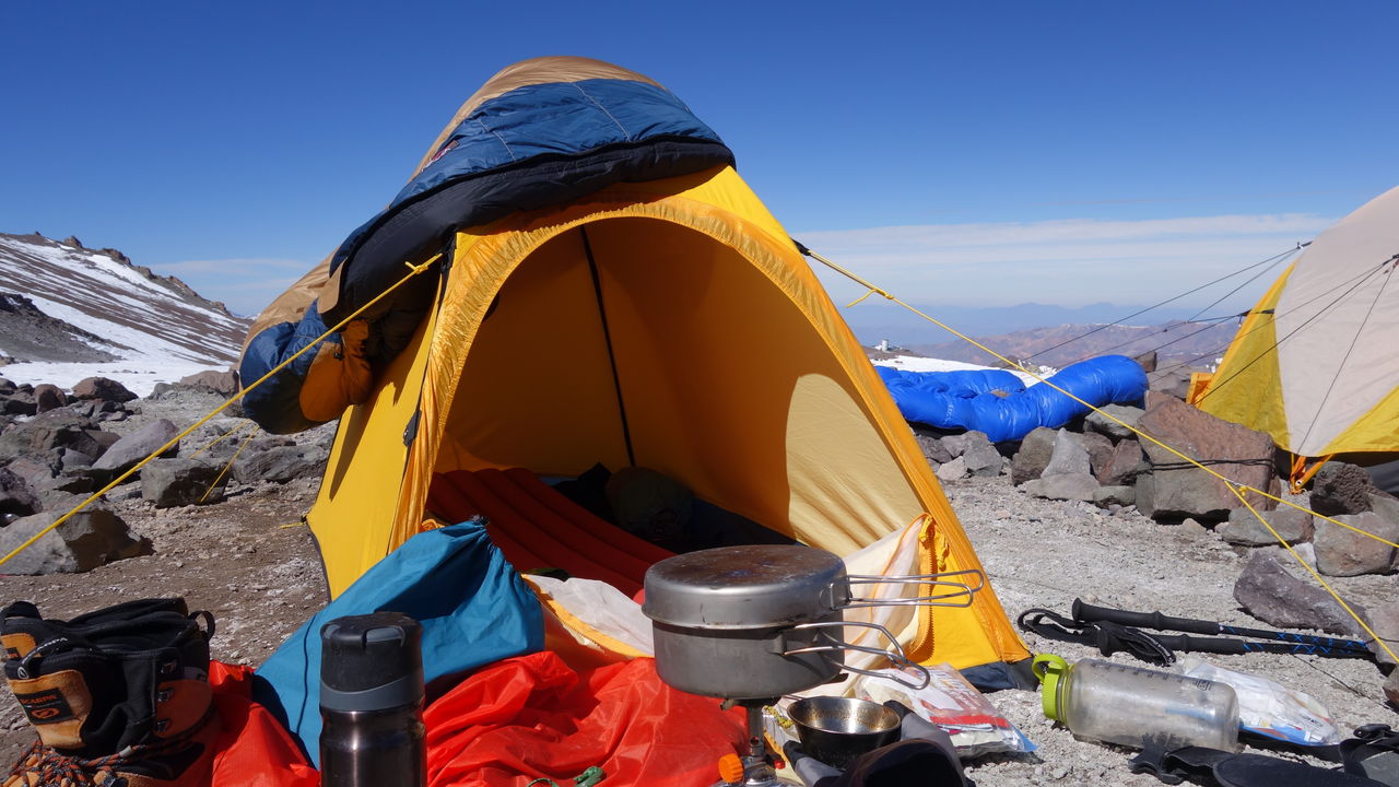 BCより下にあるプラサ・フランシアで会ったきりだったカナダ人のクレイクとそのガイド、シーザーとC2で再会した、息が合う僕らは再会を喜び抱き合った。僕の小さなシングルウォールのテントとは違いノースフェイスの5人ほど寝られそうなドームテントの彼らは、入れ入れ!と言って中に招き入れてくれた。ギリギリまで荷物を切り詰めている僕とは違い天井も高く快適で食べ物だってガスだって十分すぎるほどある。さすがクレイクがシーザース・パレス(ラスベガスの高級ホテル)と呼ぶだけのことはある。