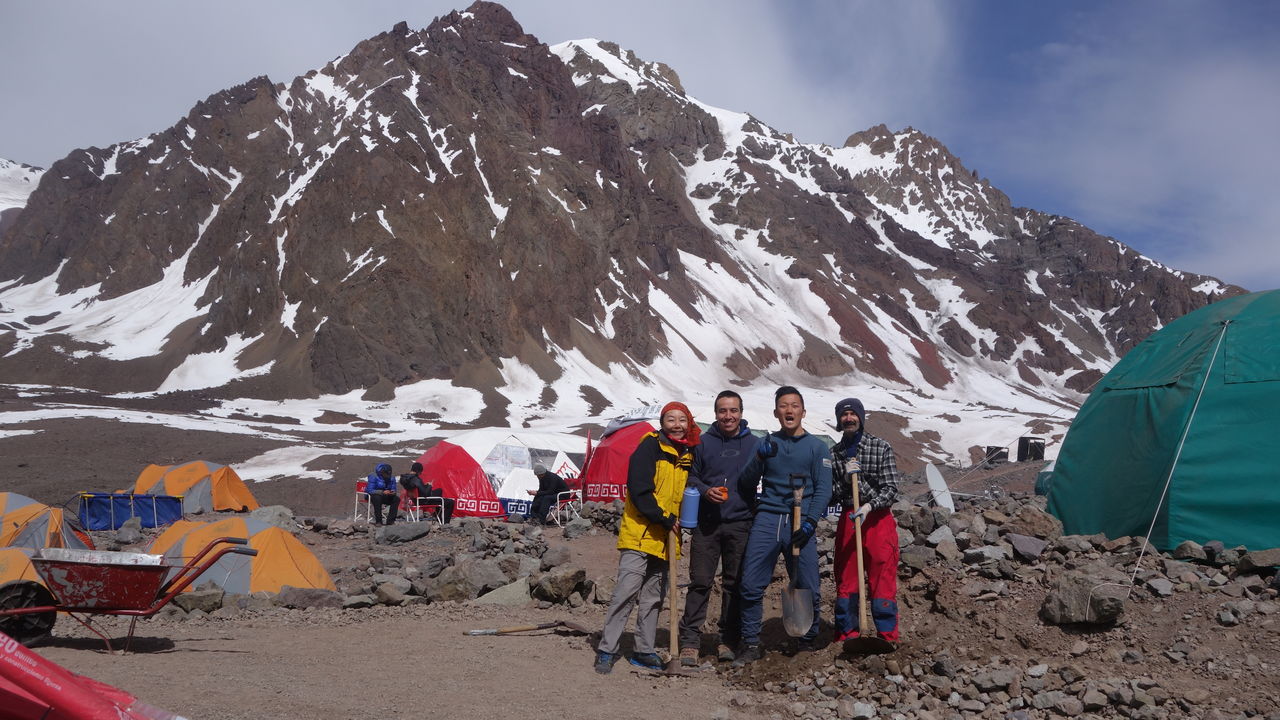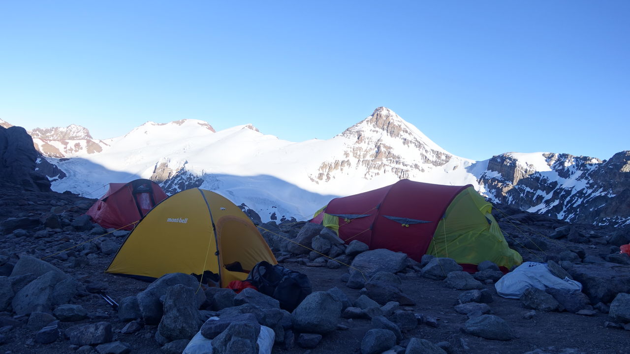 昼間の半袖でいられるほどの陽気なBCでフェリックスとフアンは今日も何やら相談をしながら大きなテントを立てている。フェリックスとフアンは僕が利用している登山サポート会社のフアン・トラベルサービスで働いていてBCでテントや食事を提供している。BCにある他の大きな会社とは違い客も僕一人だけで家族のように接してくれる。大きなテントを立てるのを手伝いながら飲むマテ茶にアンデスの芸術のような岩峰の景色は癒しであった。