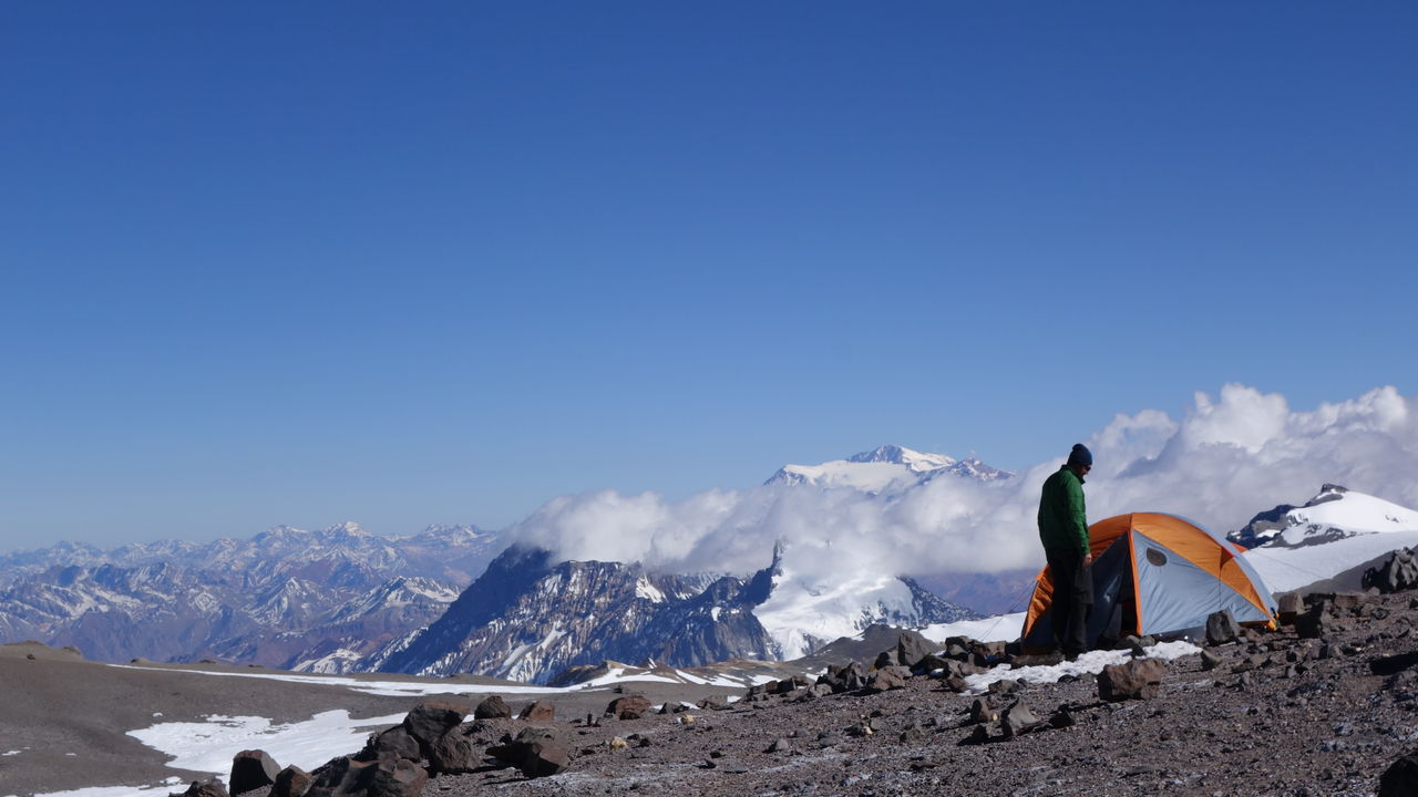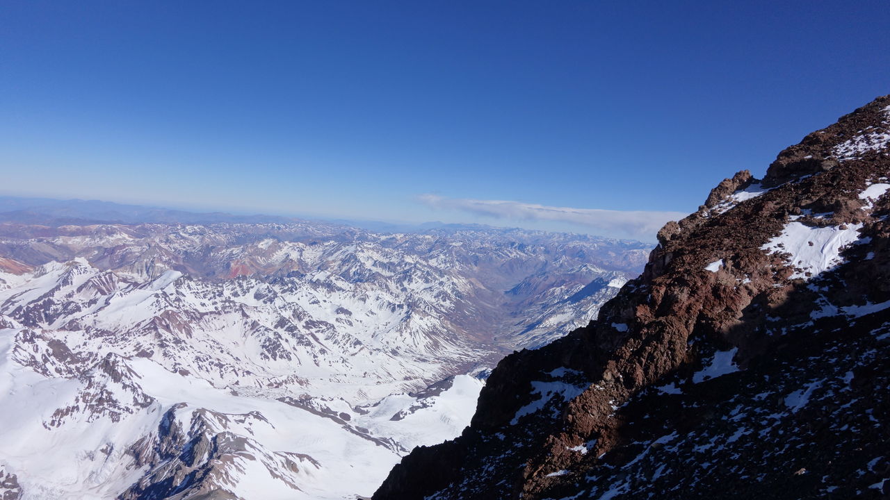 どちらにせよ、コンピュータのソフトで描いたような真っ青な天井から地平へ落ちていく水色のグラデーションを、今にも剥がれ落ちそうな巨大な一枚の岩壁を、体に吹き付ける砂交じりの風を、僕はまさに今 目で匂いで体でアコンカグアを感じている。母が「体にいい」と言っていたルイボスティーでウガイをしていたお蔭か風邪も小康を保っている。