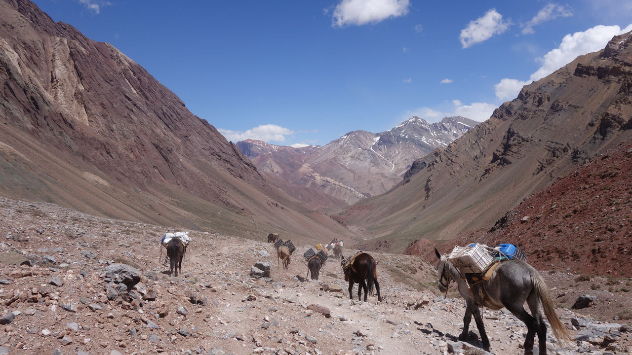 ここから3日かけてゆっくり高度順応しながらベースキャンプ(BC)のプラサ・デ・ムーラス4300mまで登った。アコンカグア登山で許可される日数は20日、入山料は10万円、BCではメディカルチェックも受けなければいけない。だがそんなしがらみなど忘れ去れるほどBCまでの景色は美しかった。