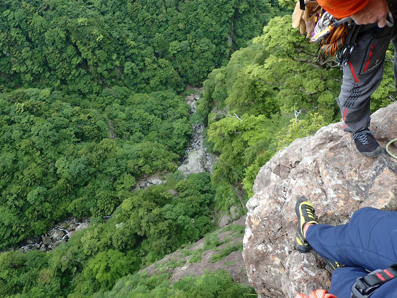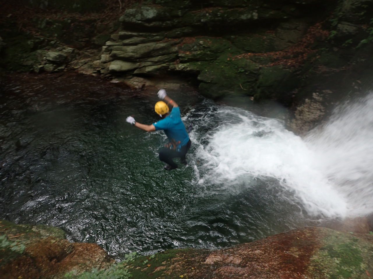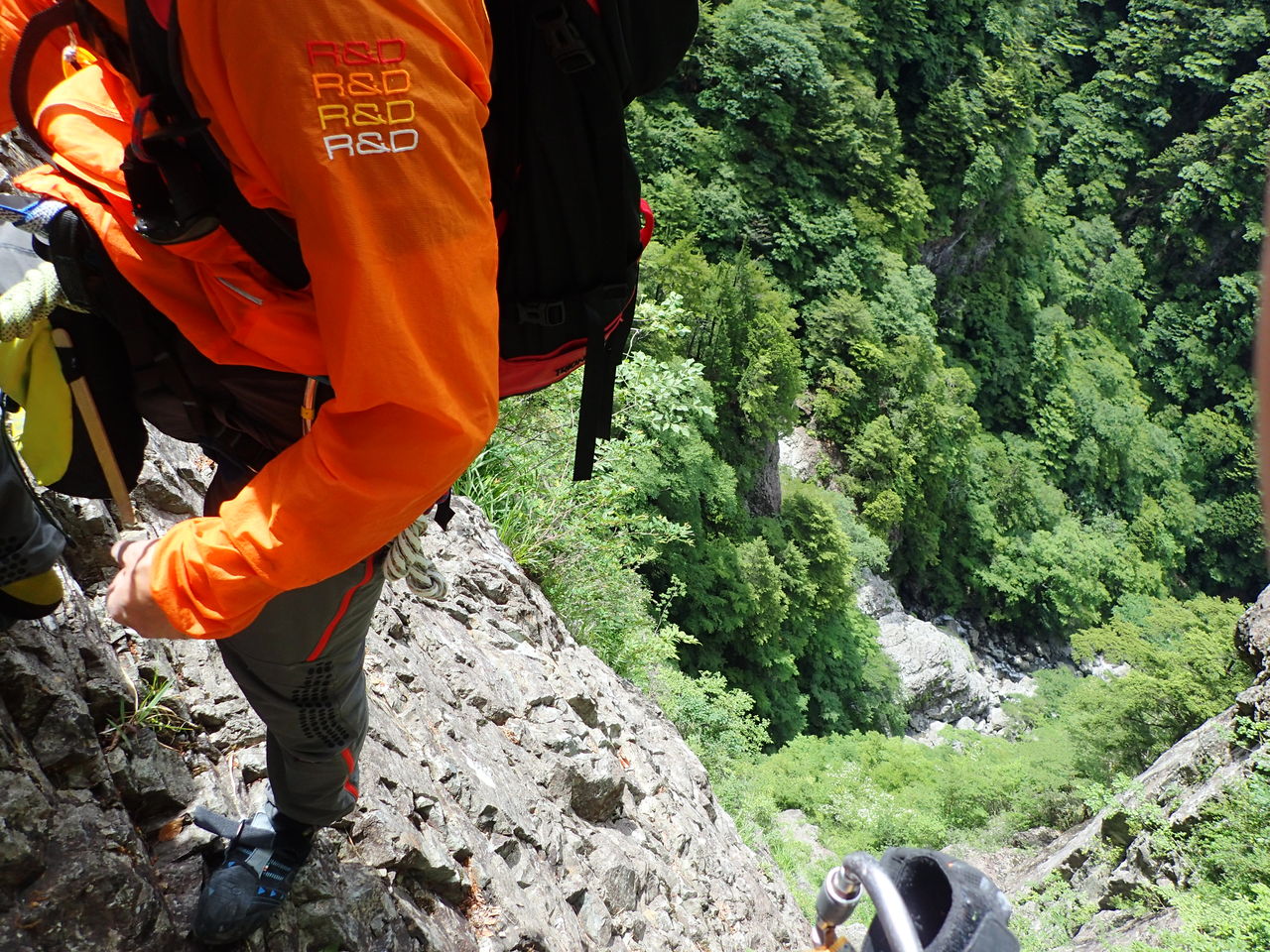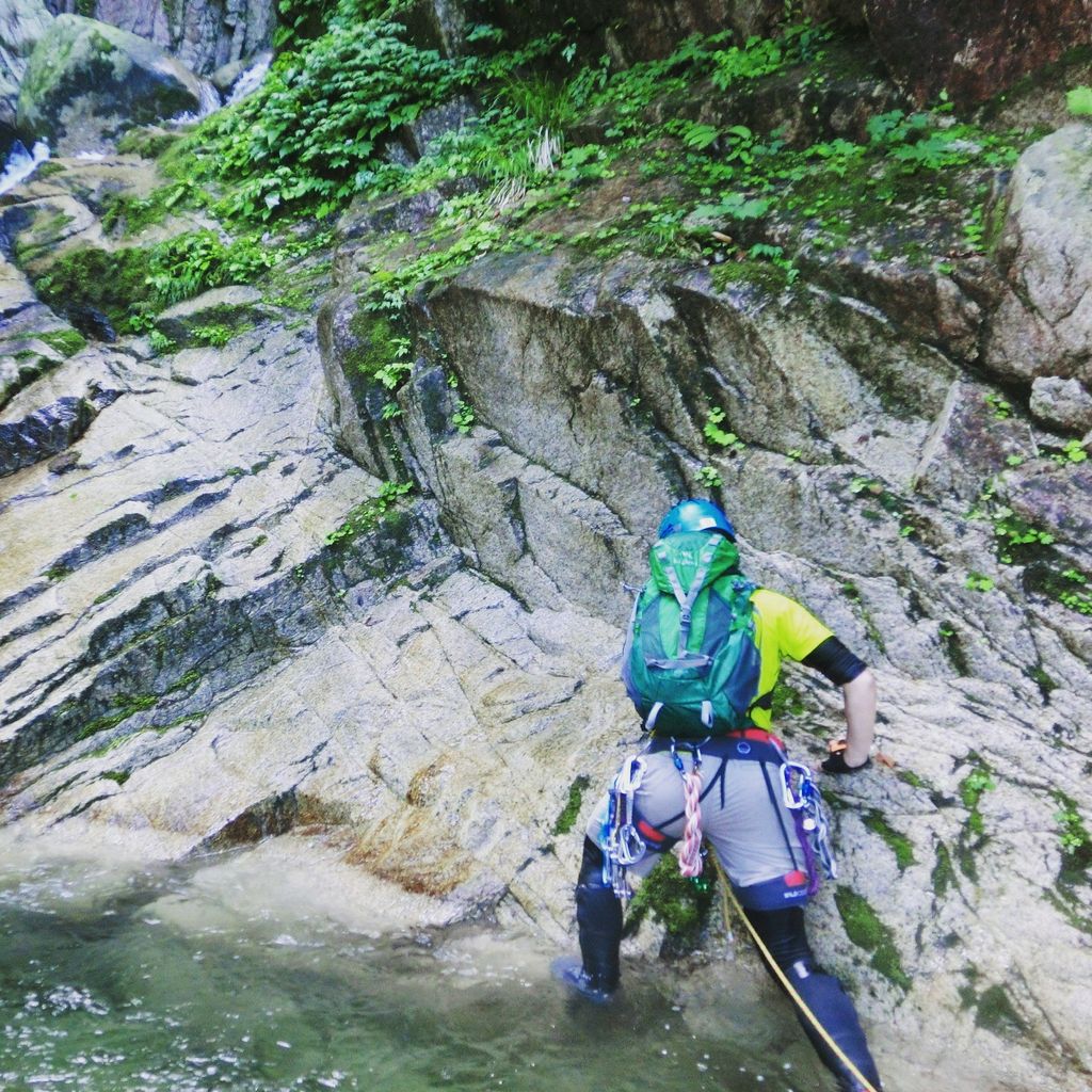 1段目から3段目まではどうということはないが、4段目の釜がなかなかの水量で渦巻いており、ここは渋いへつりで切り抜けた。