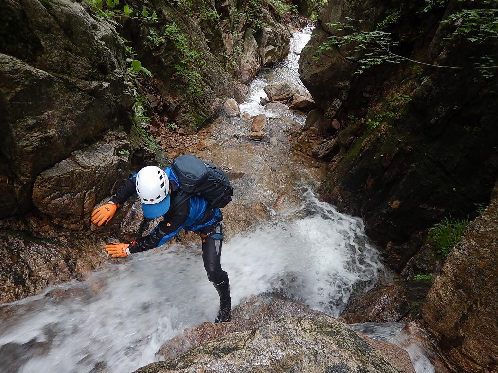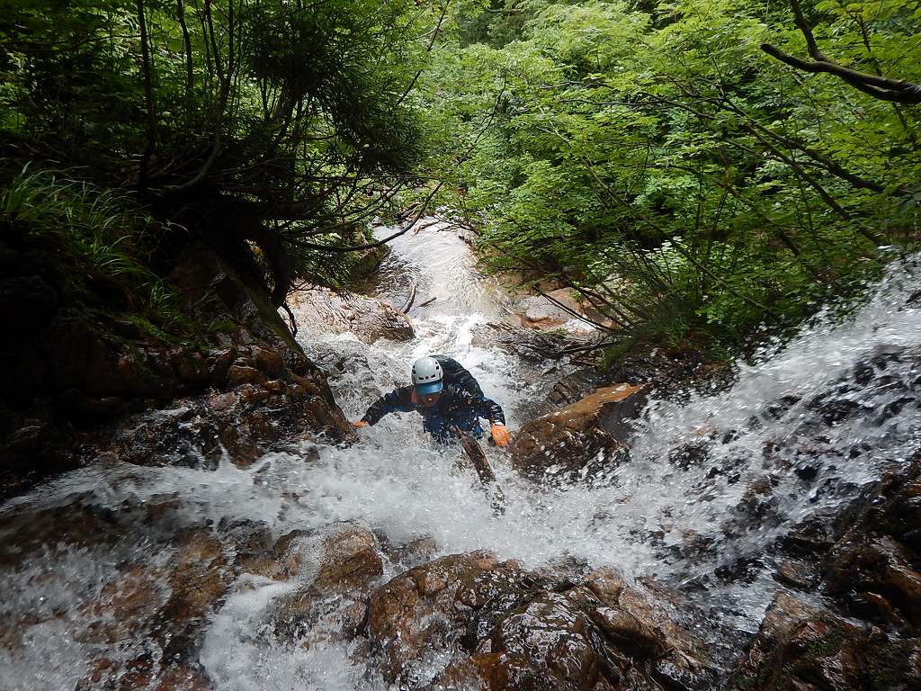 その後は小滝を快適に、極力水線を行きながら、時には弾き返されながらの遡行。