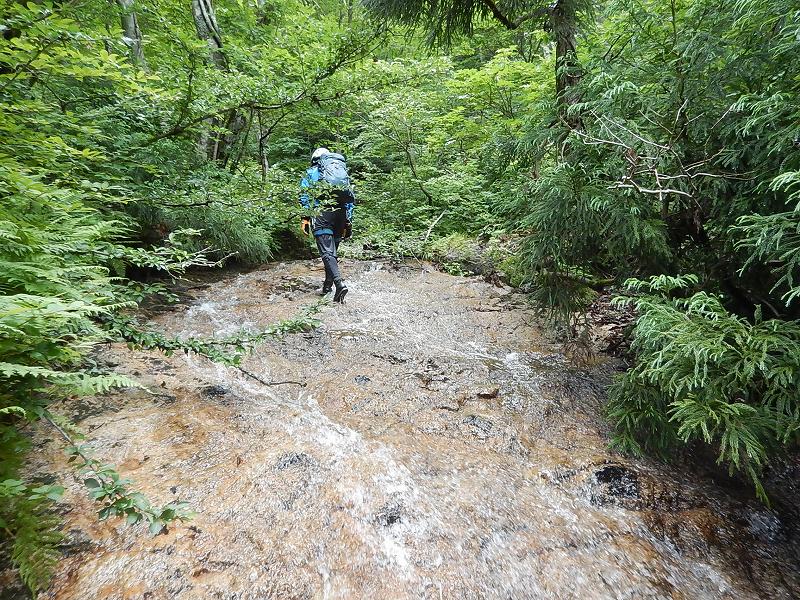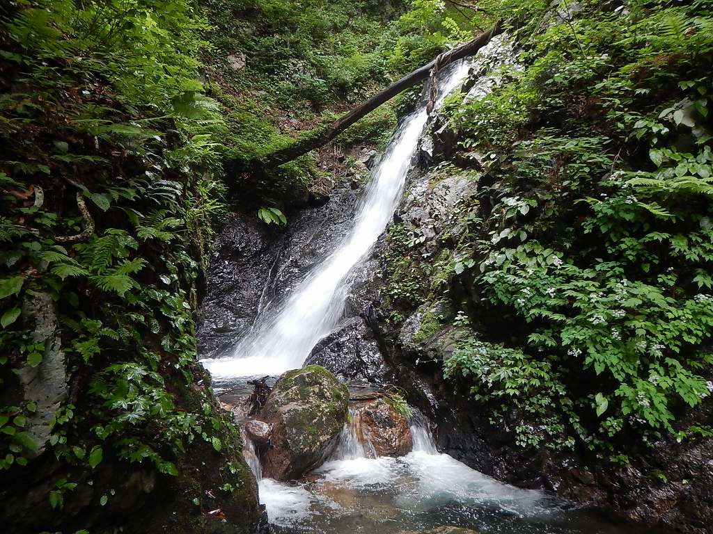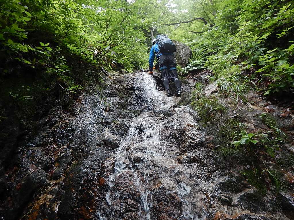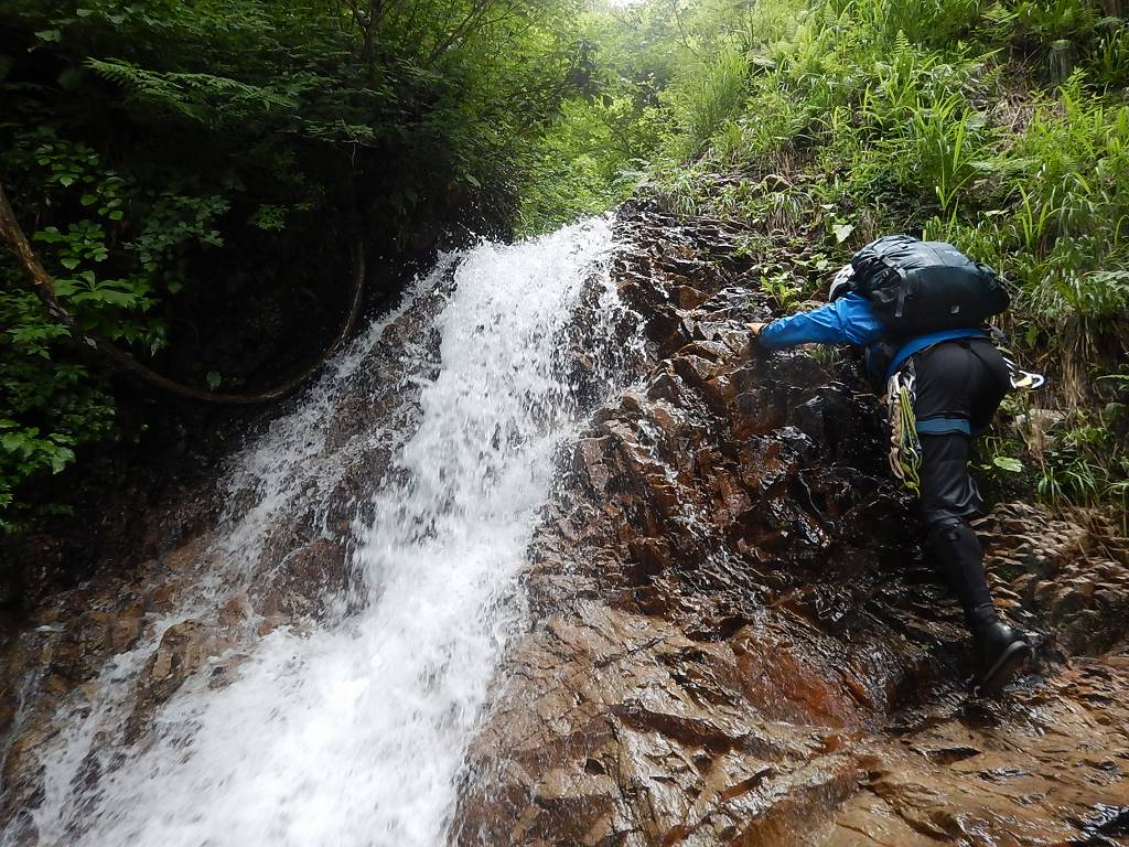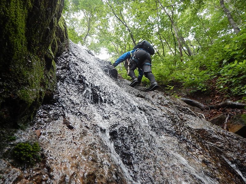 連日で増水した沢も少しは落ち着いてるかと思ったがそこそこの水量で、三の滝を突破できるのかと少々不安になる・・・。