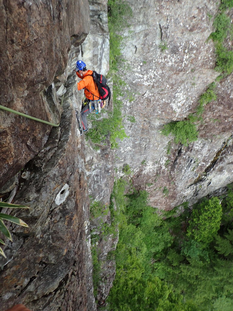 抜けた先の左岸側は広めのスペースとなっており、そこからロープを引いて左岸リッジを登攀したが特に緊張する個所もなく意外にあっさりと抜けることができた。