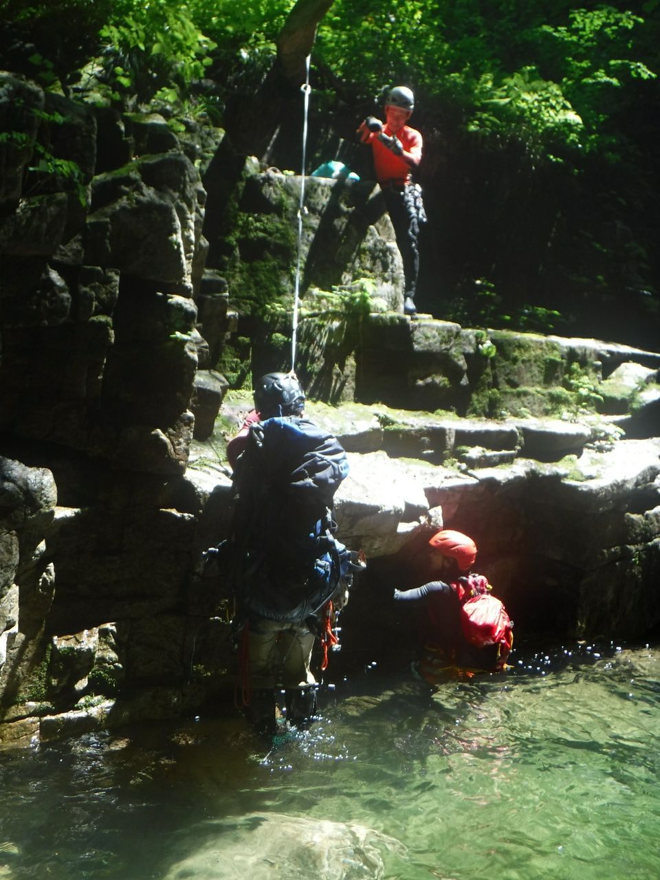 後続は万一に備えロープで確保し、水流に巻きこまれないよう引き抜いた。
