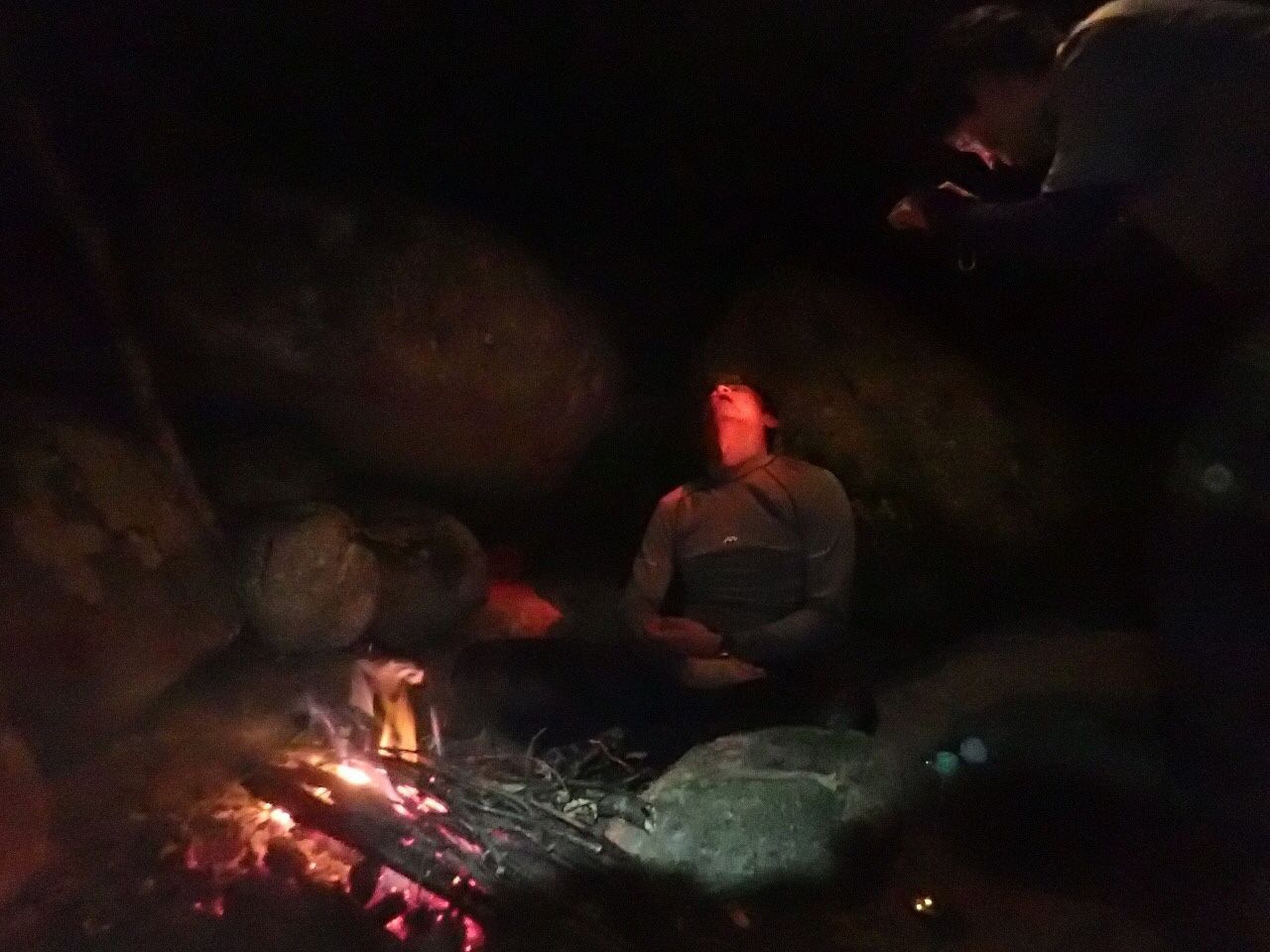 火を絶やすまいとOKDさんは聞いたことない奇声を上げて薪を集め、帰ってきたと思ったら千鳥足で焚き火に突っ込んだりしてる。