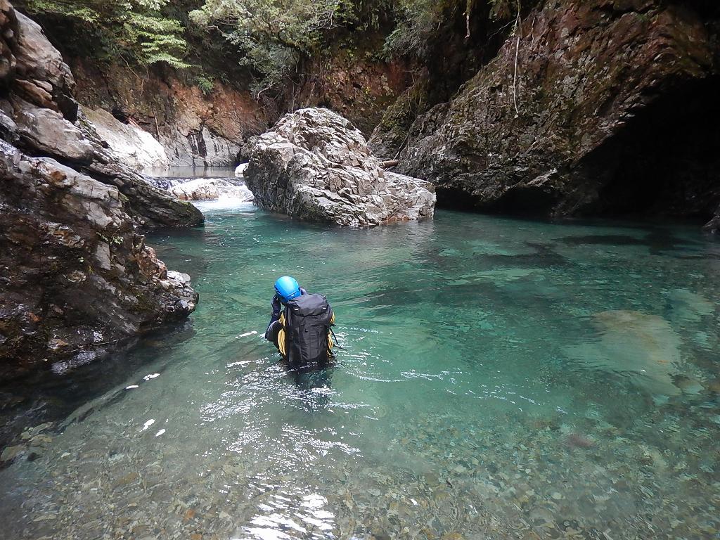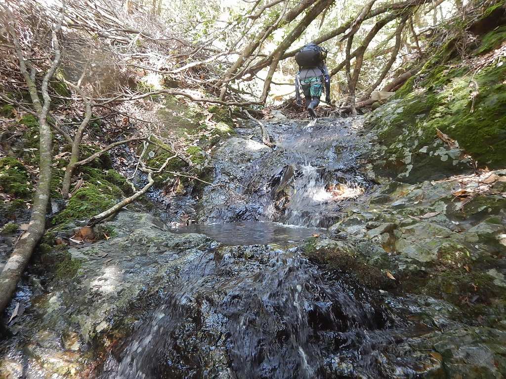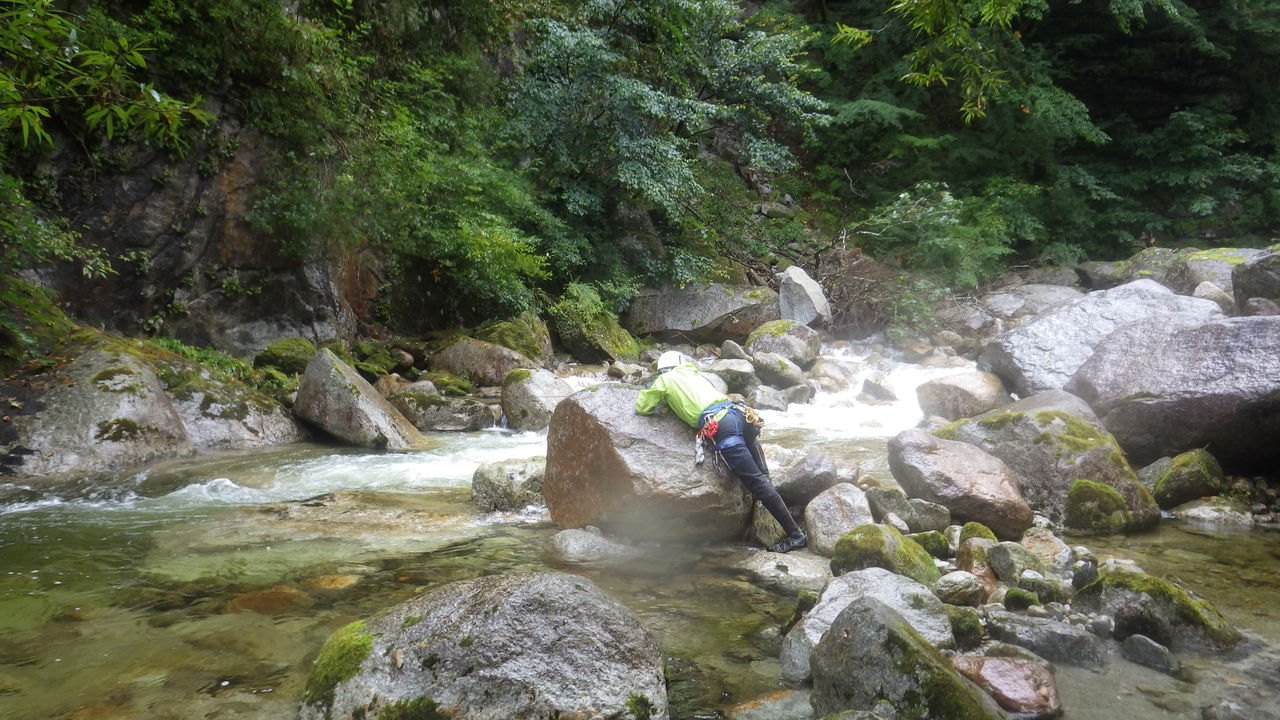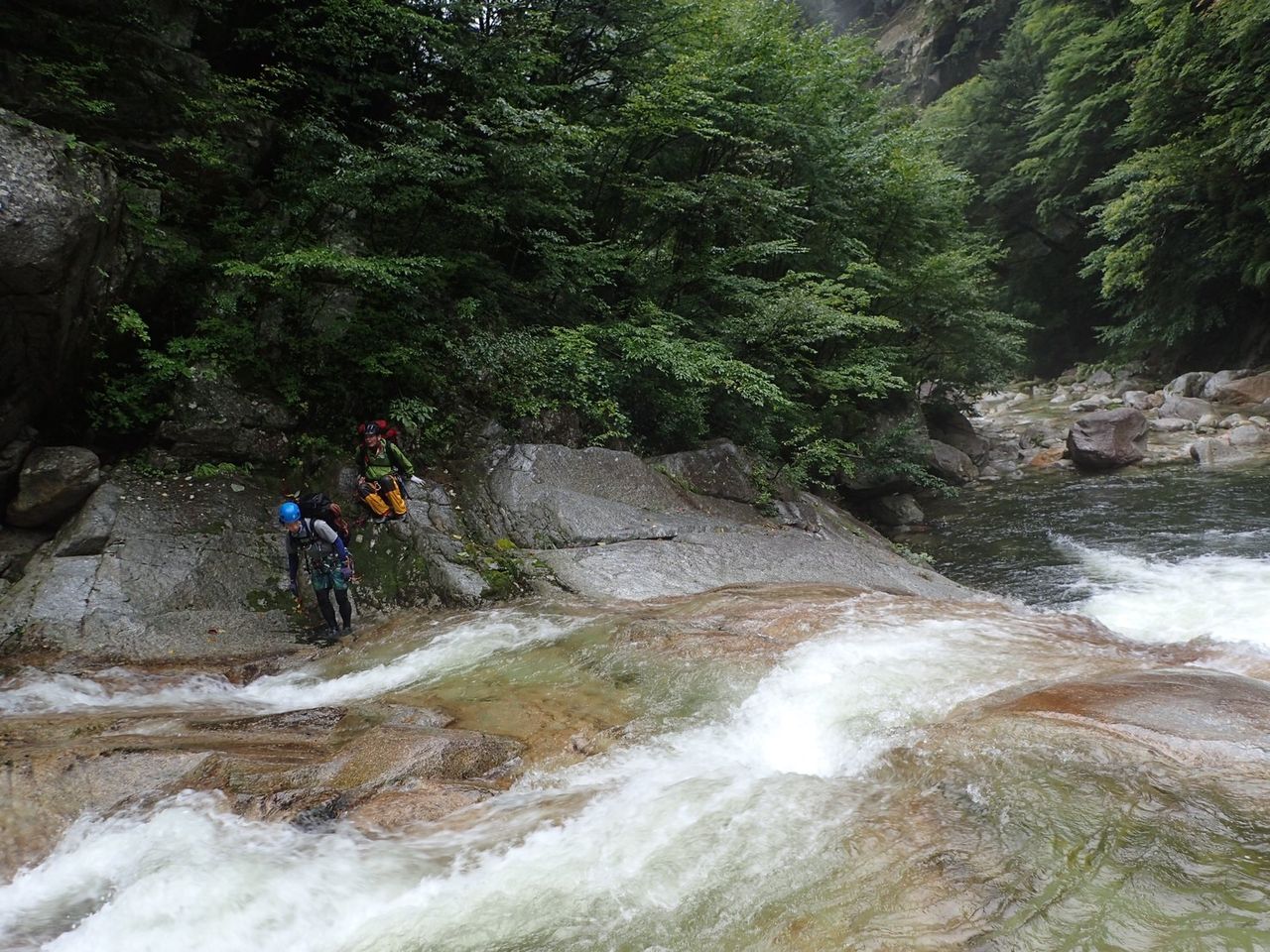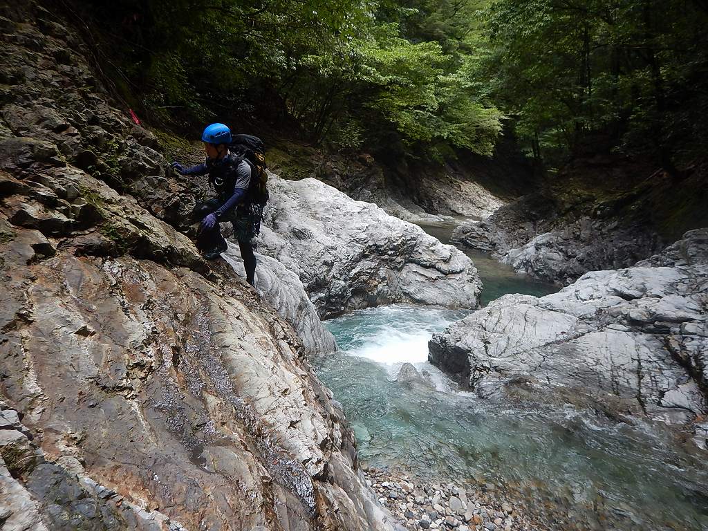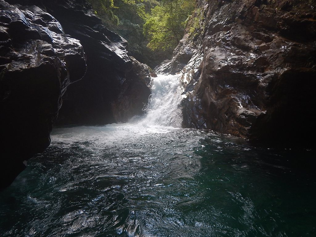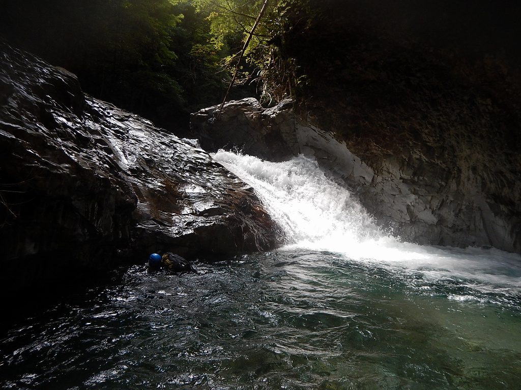 オートキャンプみたいな量の食料だ、、、と思いながら重荷を背負ってツルツルスラブの滝を登ったり巻いたり。良さげな釜や瀞があれば魚影を探す。