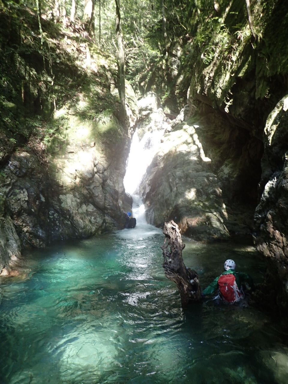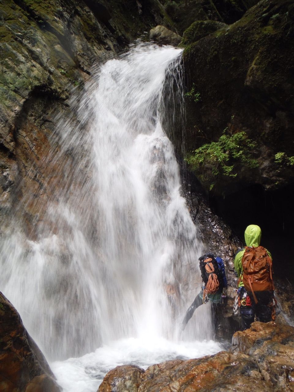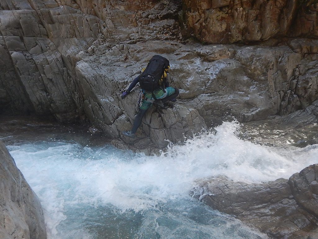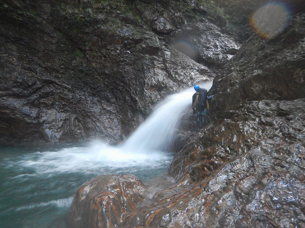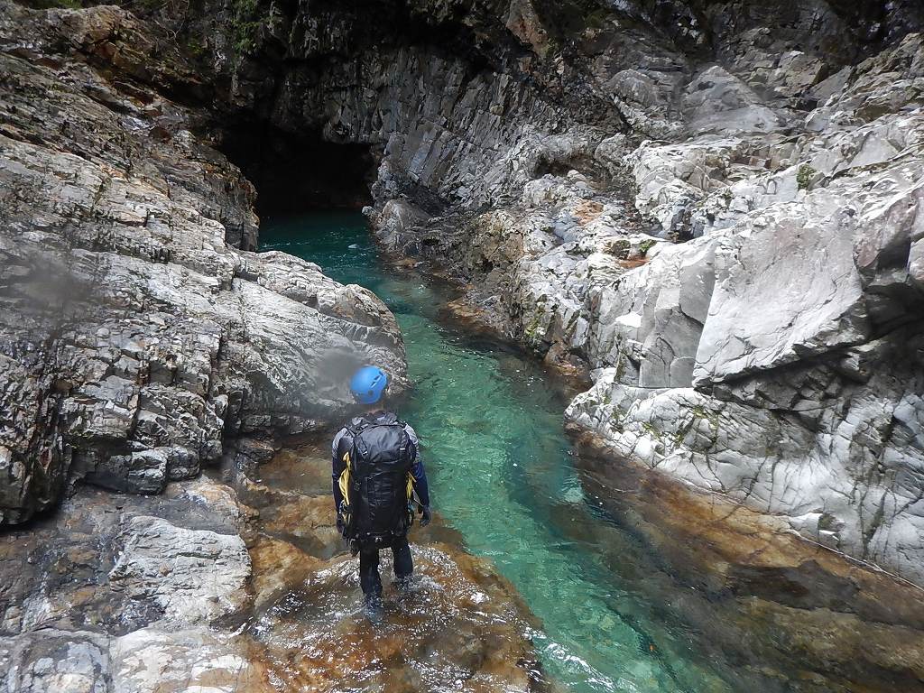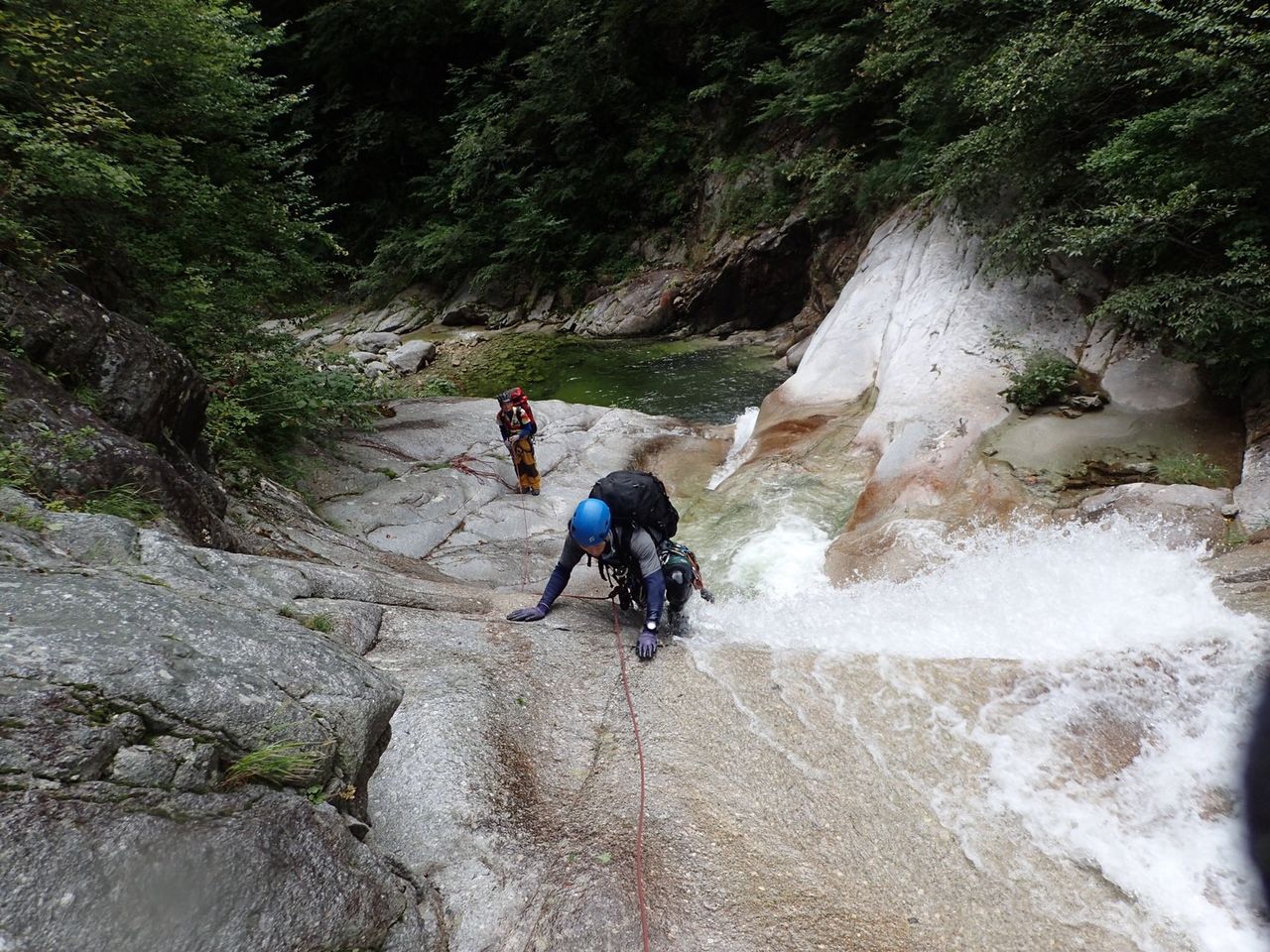 オートキャンプみたいな量の食料だ、、、と思いながら重荷を背負ってツルツルスラブの滝を登ったり巻いたり。良さげな釜や瀞があれば魚影を探す。