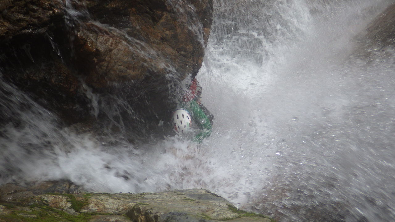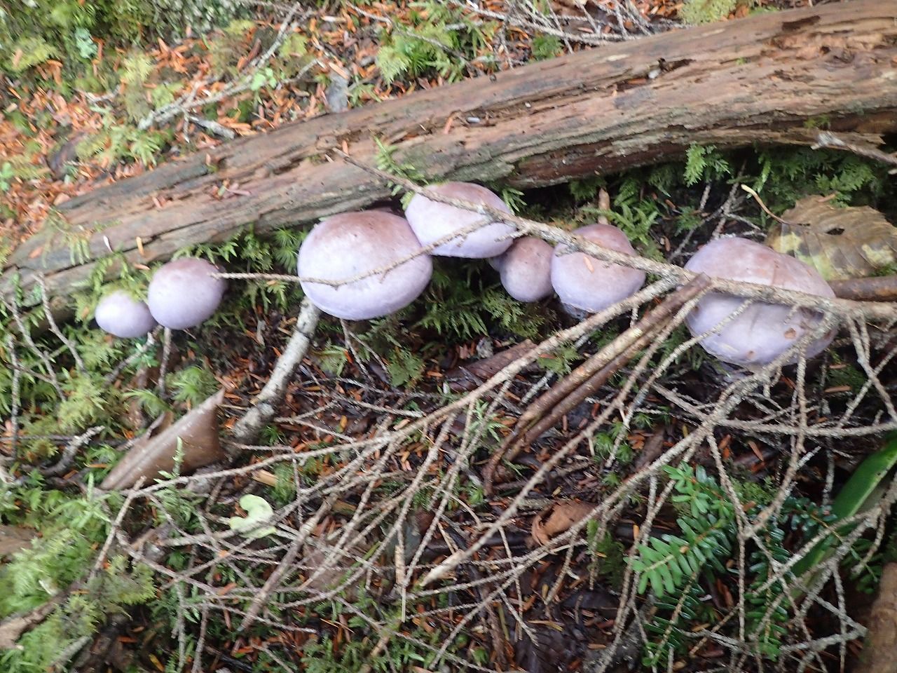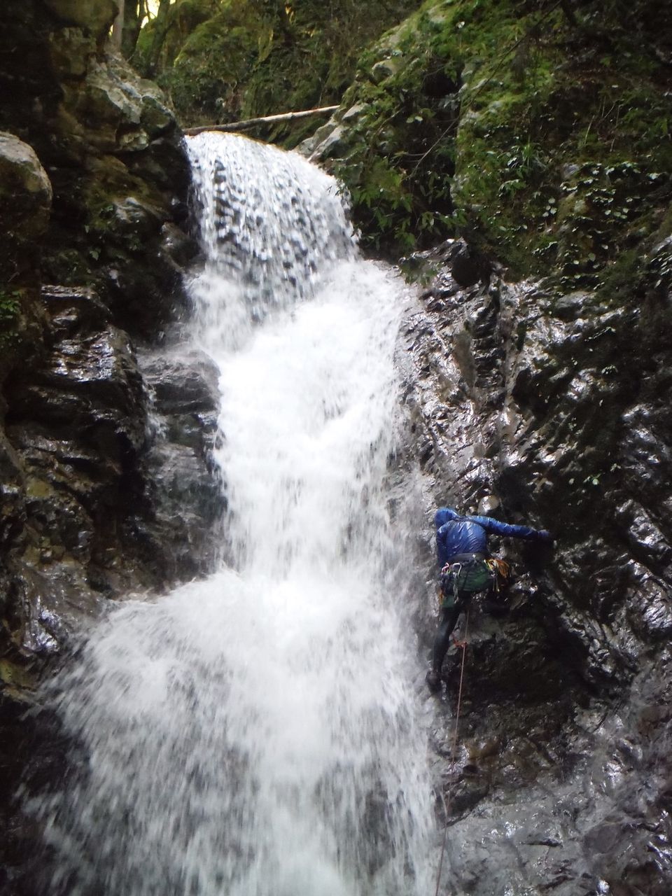 林道にちょこちょこ生えてるキノコなどを見ながらしばらく歩き、トンネルを3つ抜けた先の林道終点からフィックスロープ伝いに一応安全を期して懸垂下降なども交えつつ沢まで降りて、入渓。