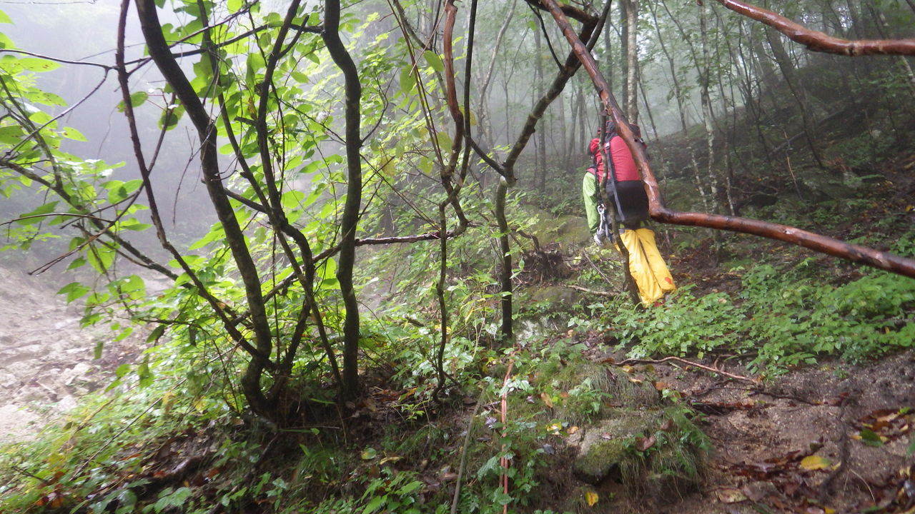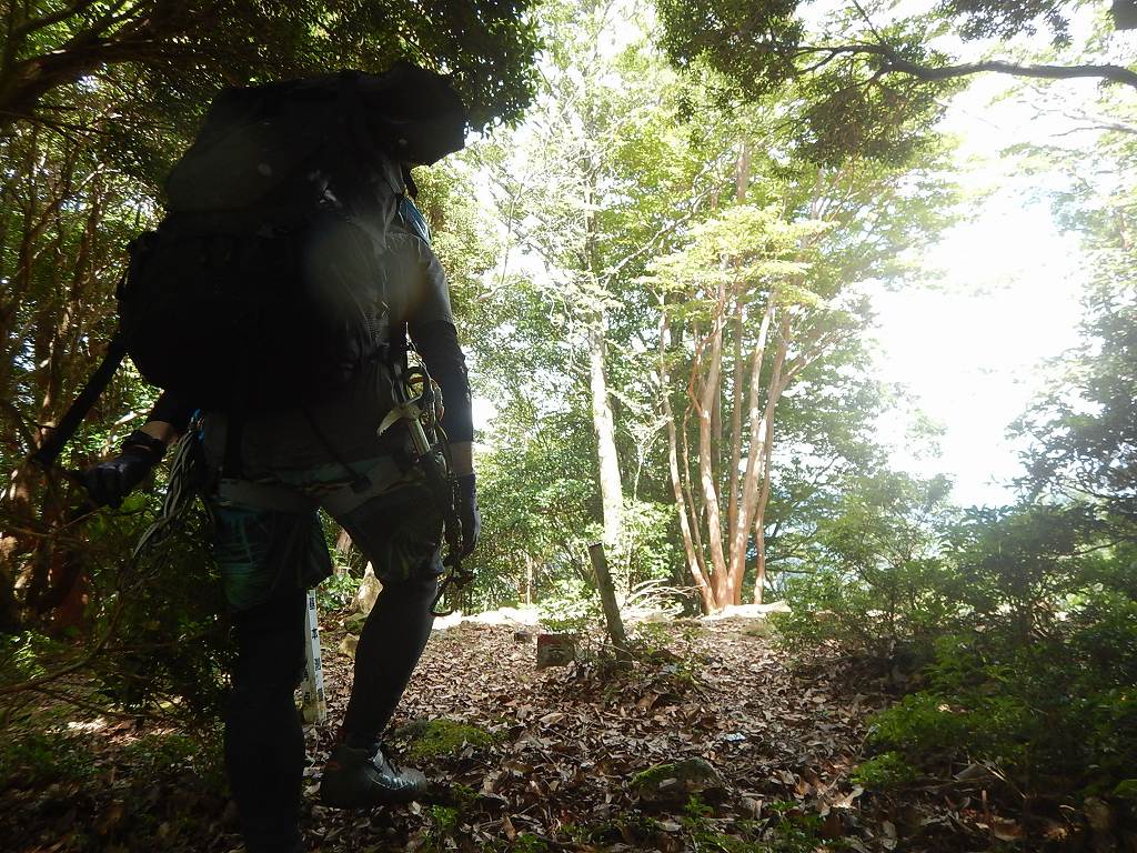 食材も酒も全て食べたと言えども、ギアの重みもあってかザックはボチボチ重い。急登に喘ぐ。