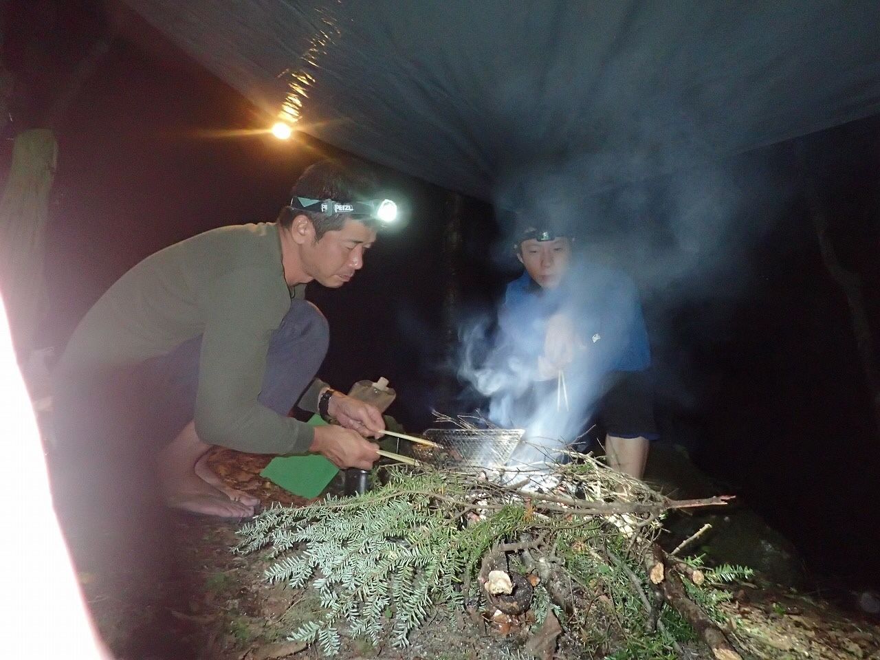 一応、僕とOKDさんで本当にエスケープできるのか道の確認の偵察に行き、Nさんは偵察を待ってる間に焚き火を起こしてくれた。