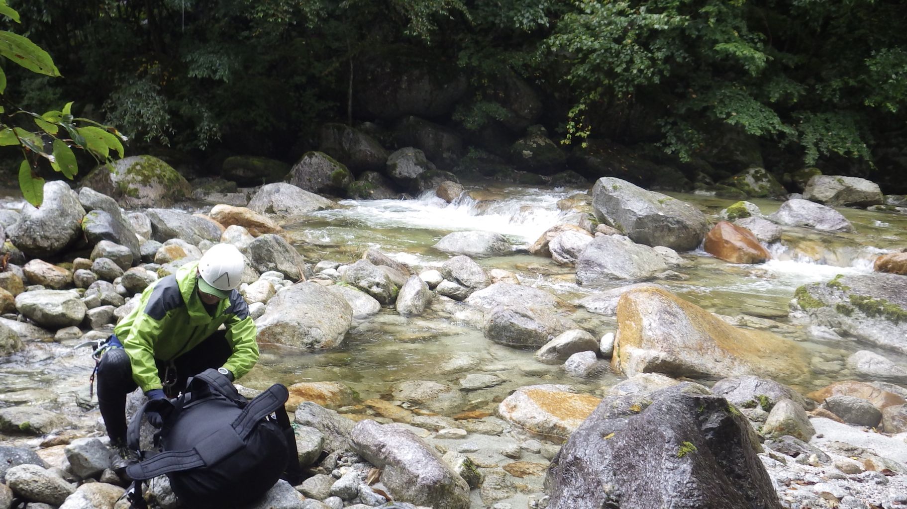 ゆるりと遡行して、そろそろビバーク地を探す時間になってきたので良きところで荷物を下ろす。雨は降ったり止んだり。