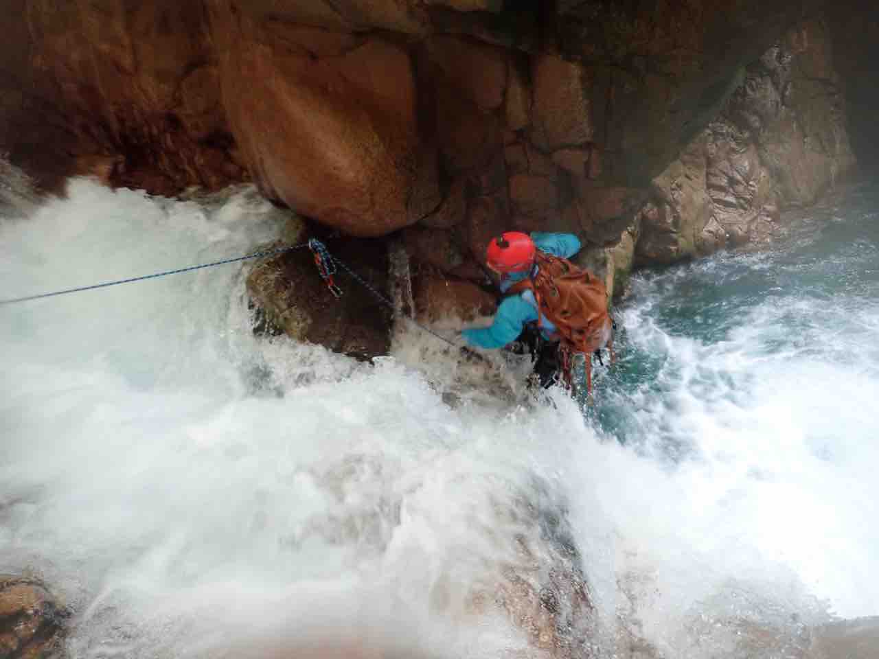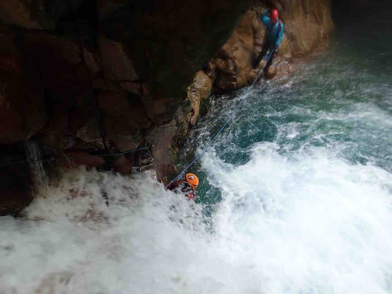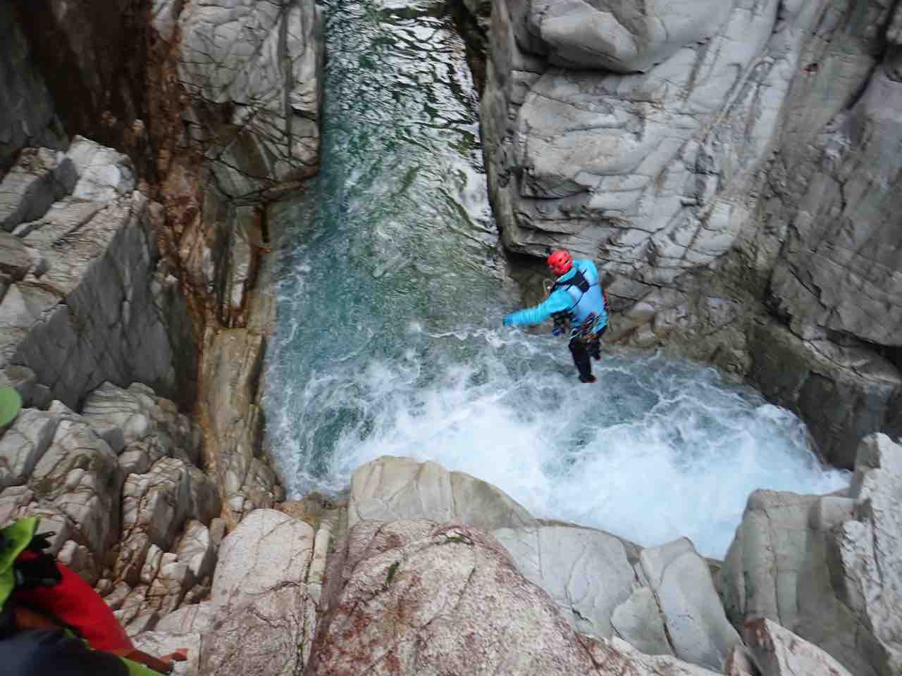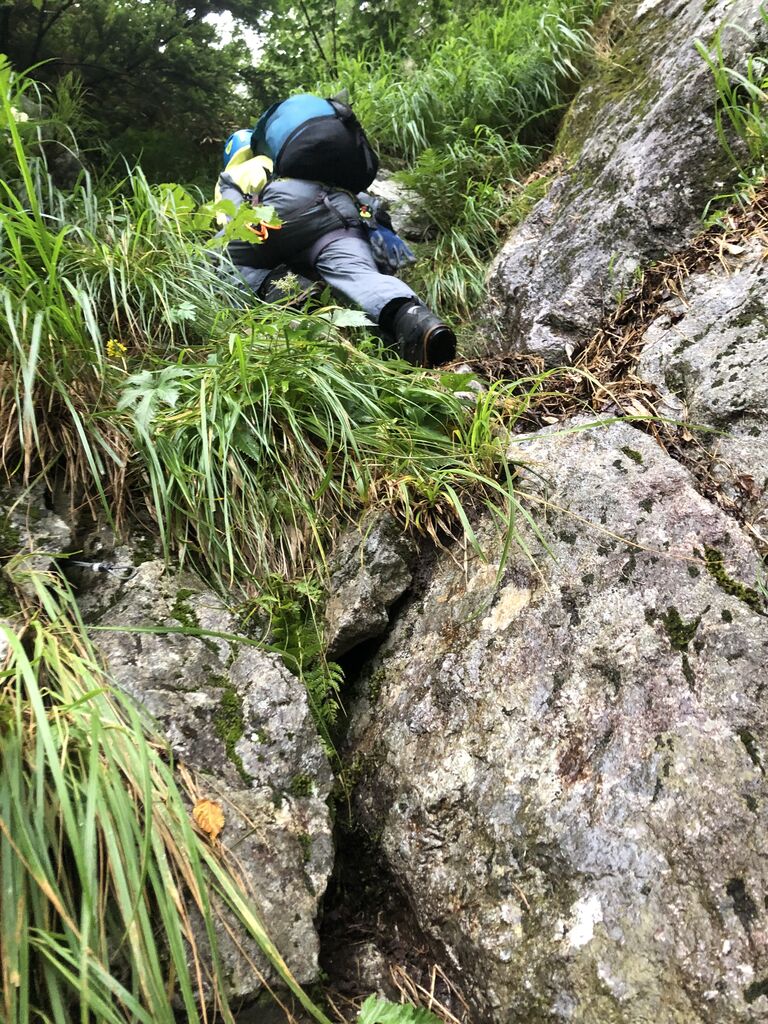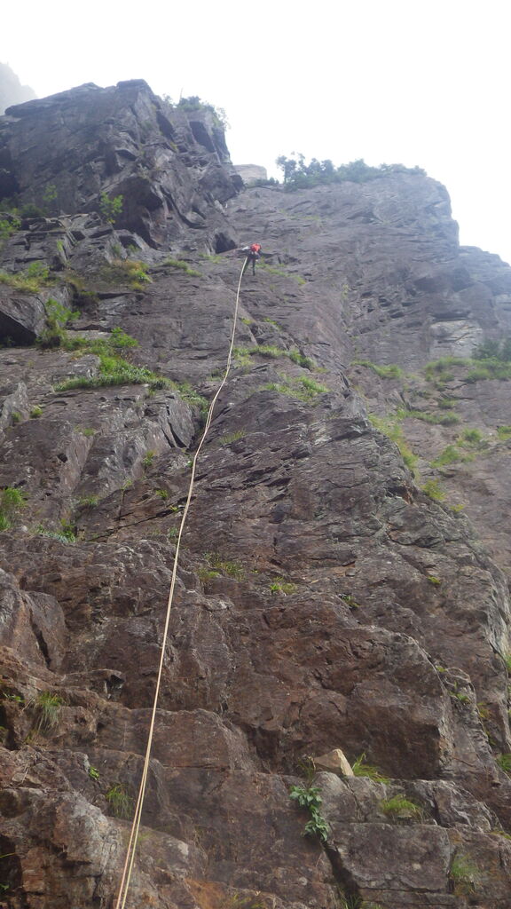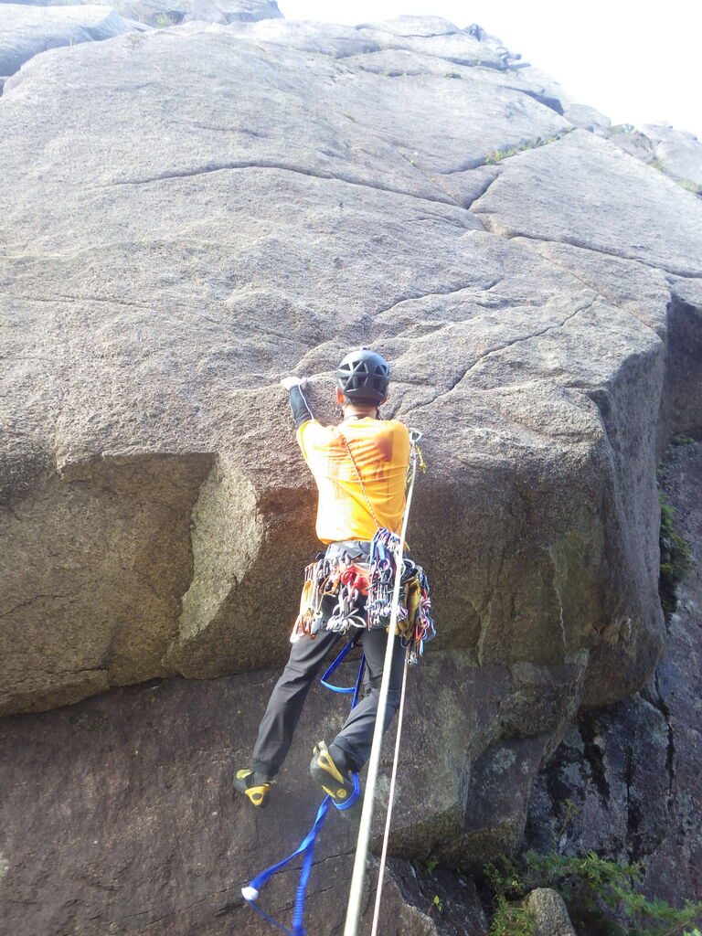 20m程でP2の終了点に到着。そこから1ルンぜ右又側に50m2回分の懸垂下降をしてアプローチの踏み跡に降りてこられた。