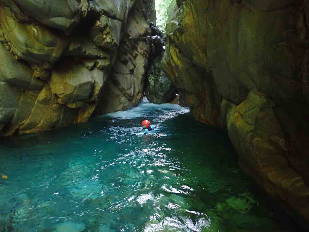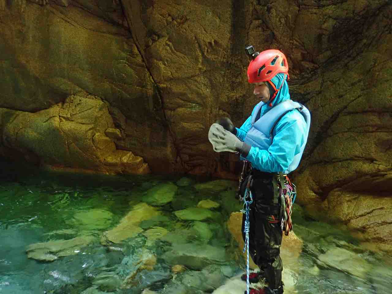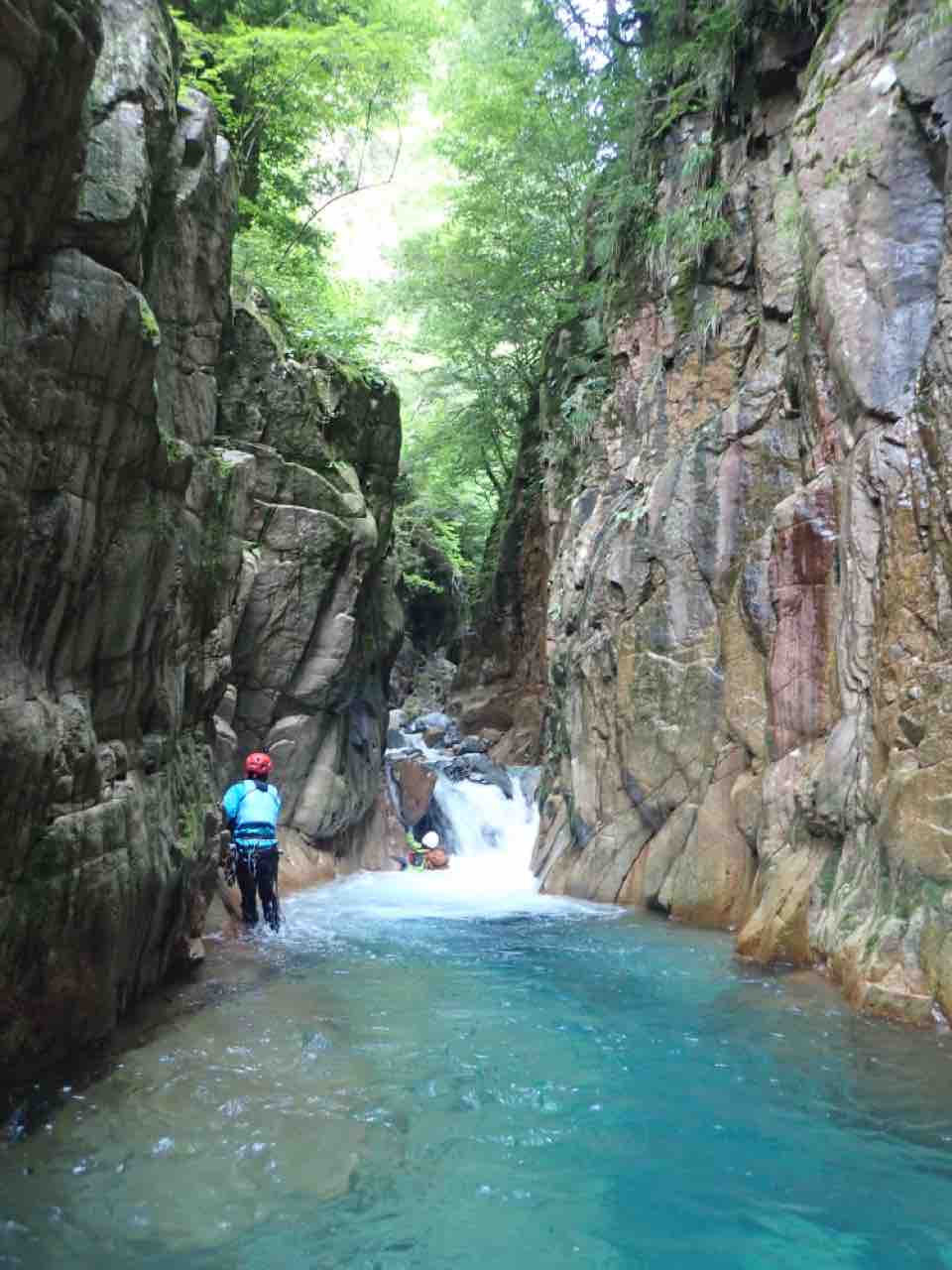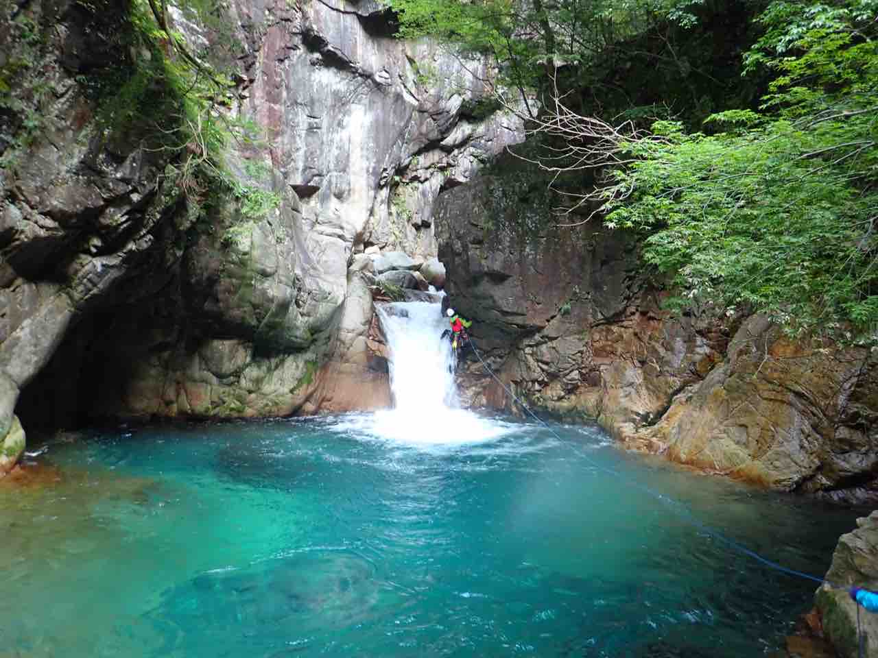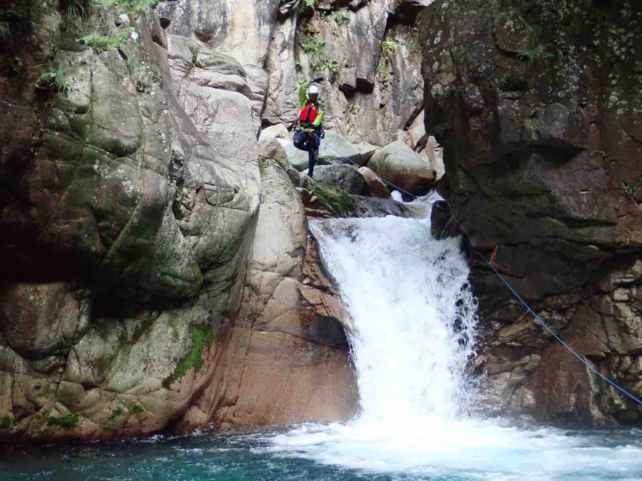 20m程でP2の終了点に到着。そこから1ルンぜ右又側に50m2回分の懸垂下降をしてアプローチの踏み跡に降りてこられた。