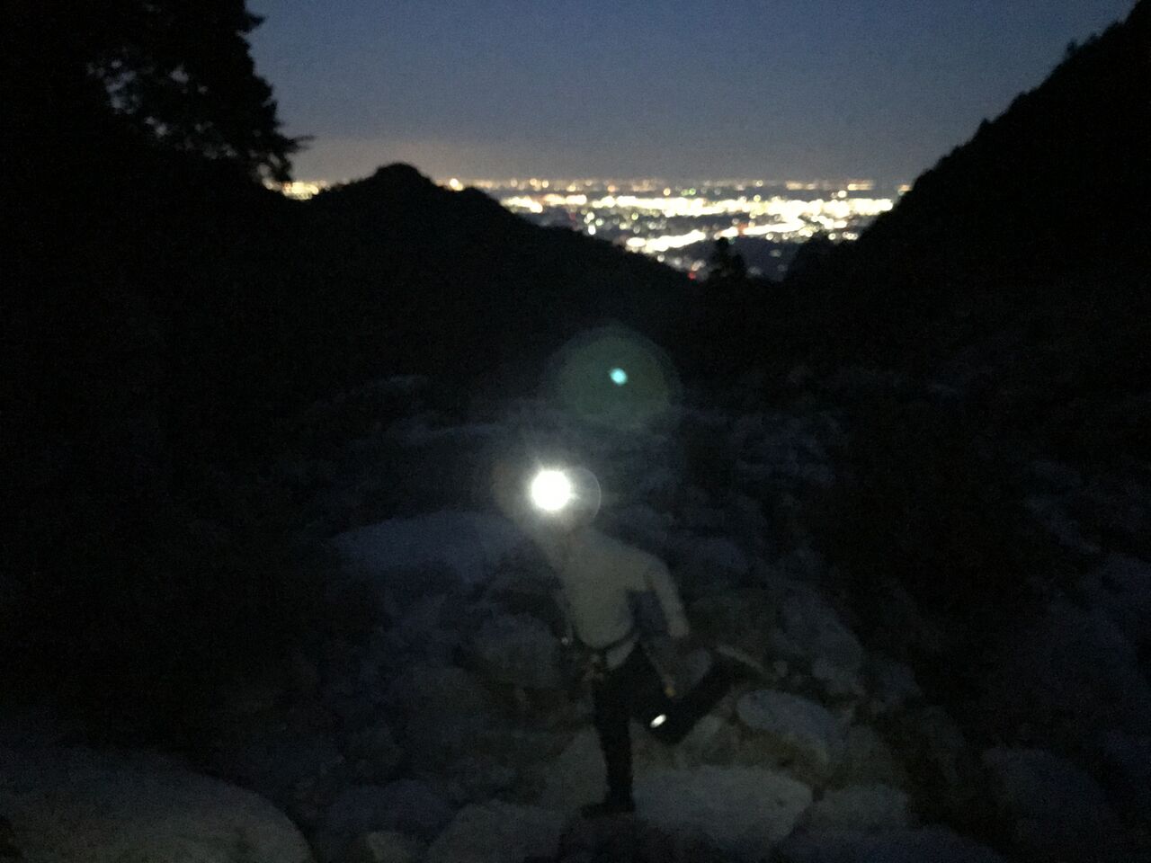 ビレイしていても暗くて見えないので、「プロテクションとれてるのかな〜。落ちたら洒落にならんなぁ。っていうか止まってたら林さんなのか岩なのかよくわからなくなるなぁ。」と思ってるうちに無事に登って、撤収。