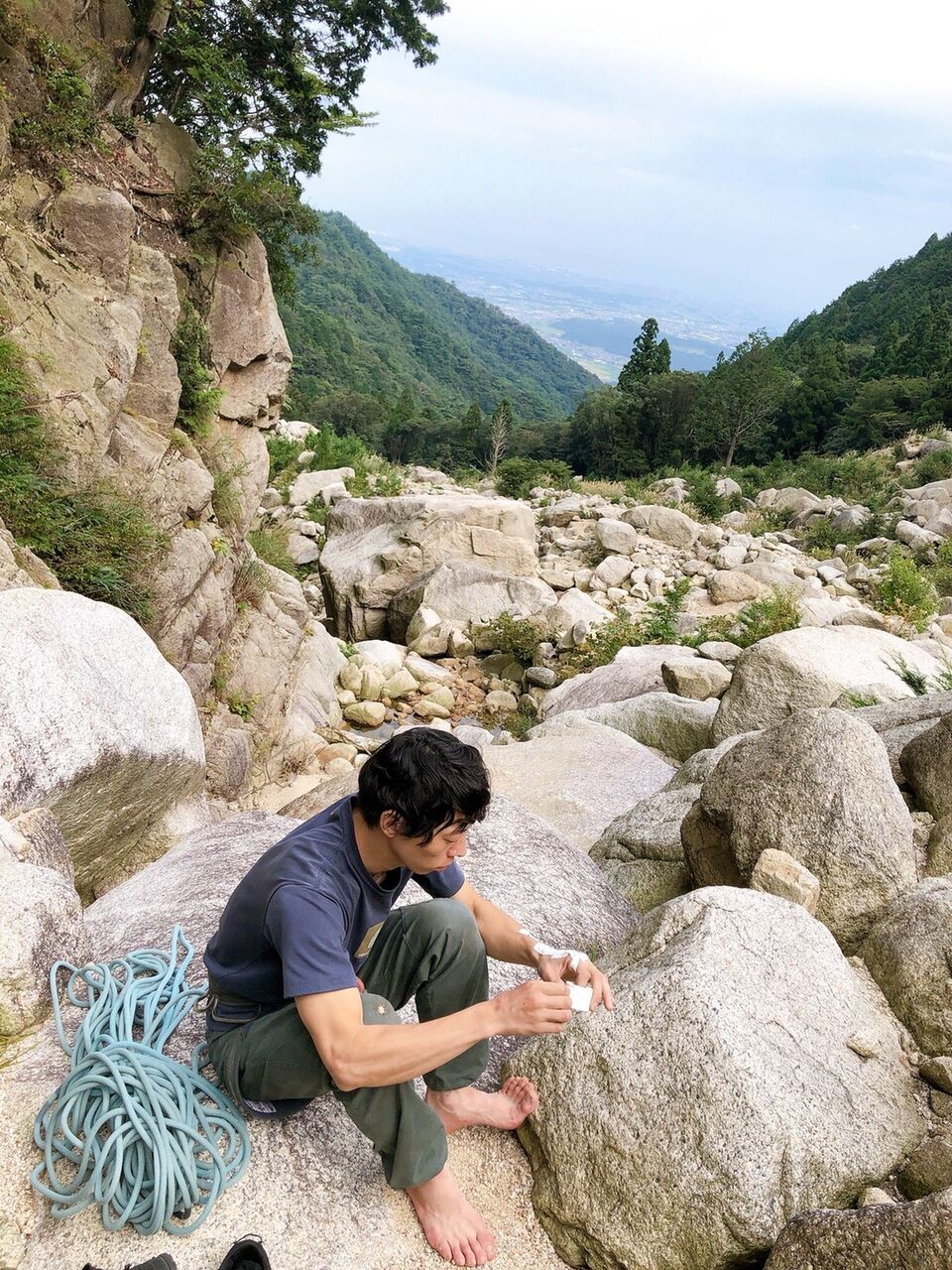 「今日はもうぼちぼち日没だし早速キャンプかな」と思っていたら、林さん「いや行きましょうよ。一本でも登れたらええやないすか。」ということで、ウサギの耳に行く。