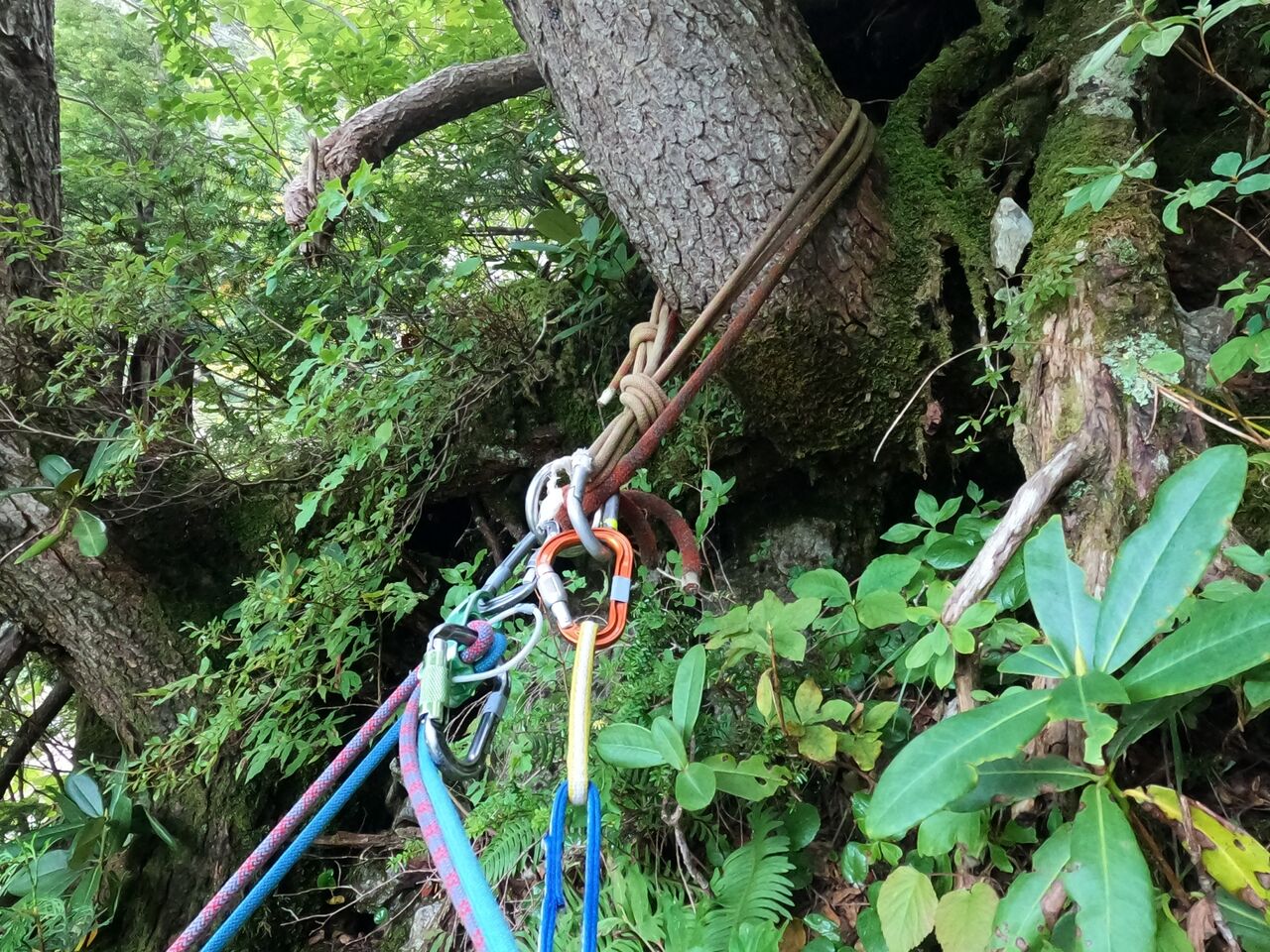 その先には巨木にスリングが架けられたルートの終了点がある