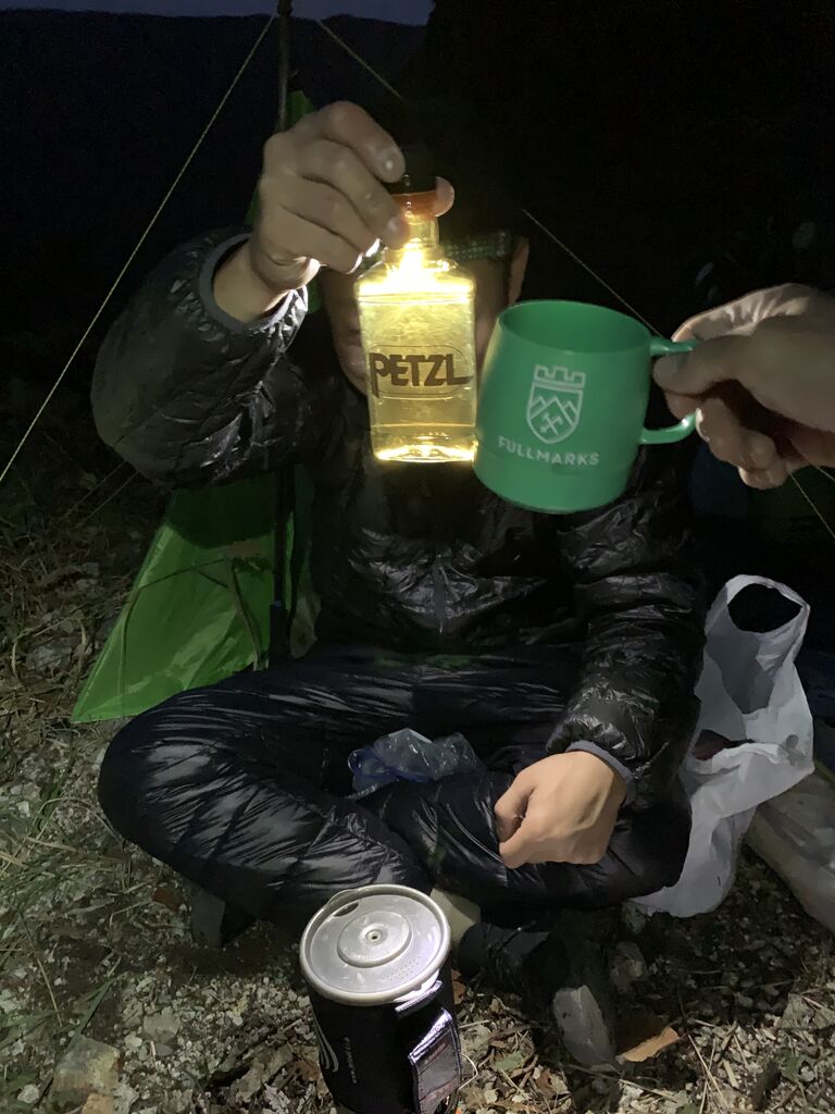 急いでツェルトを張り、明日の登攀を時短すべく空荷で2ピッチ目までFIXを張りに行く。