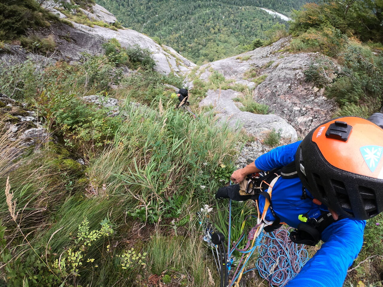FIXロープでマイトラとバックアップにクレイムハイストで登るが、