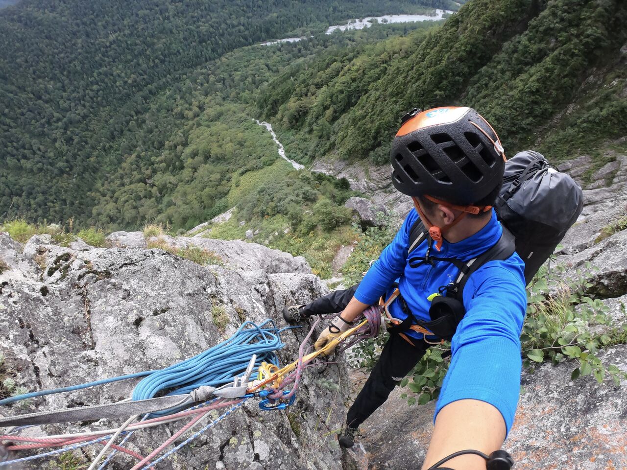 岩壁の高さ150mの場所だが、セルフをとってなくてもまず落ちる事はない。
