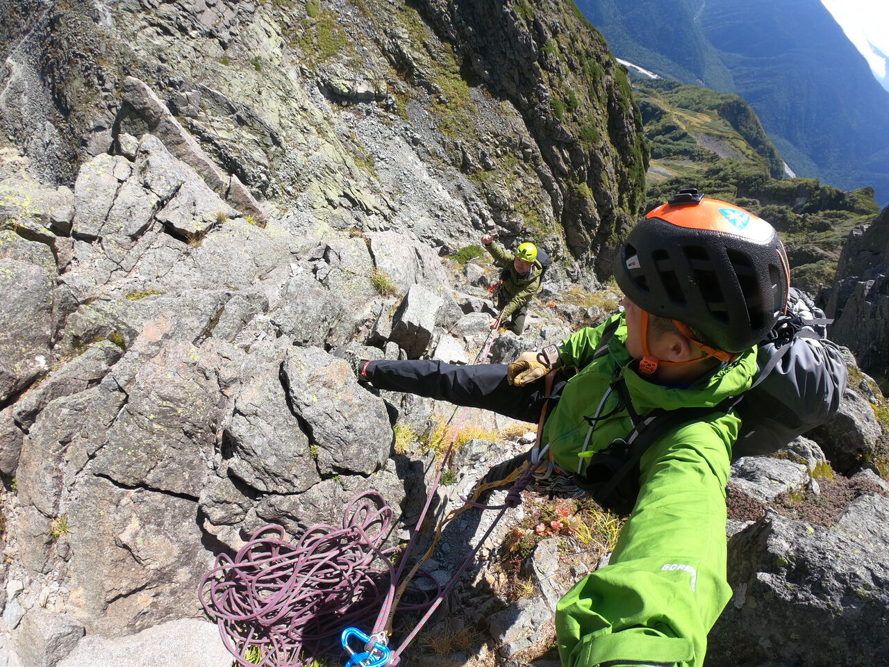 ピナクルまで上がり真横にトラバースをする。出だしは限界に近づいてる錆びたリングボルトに
