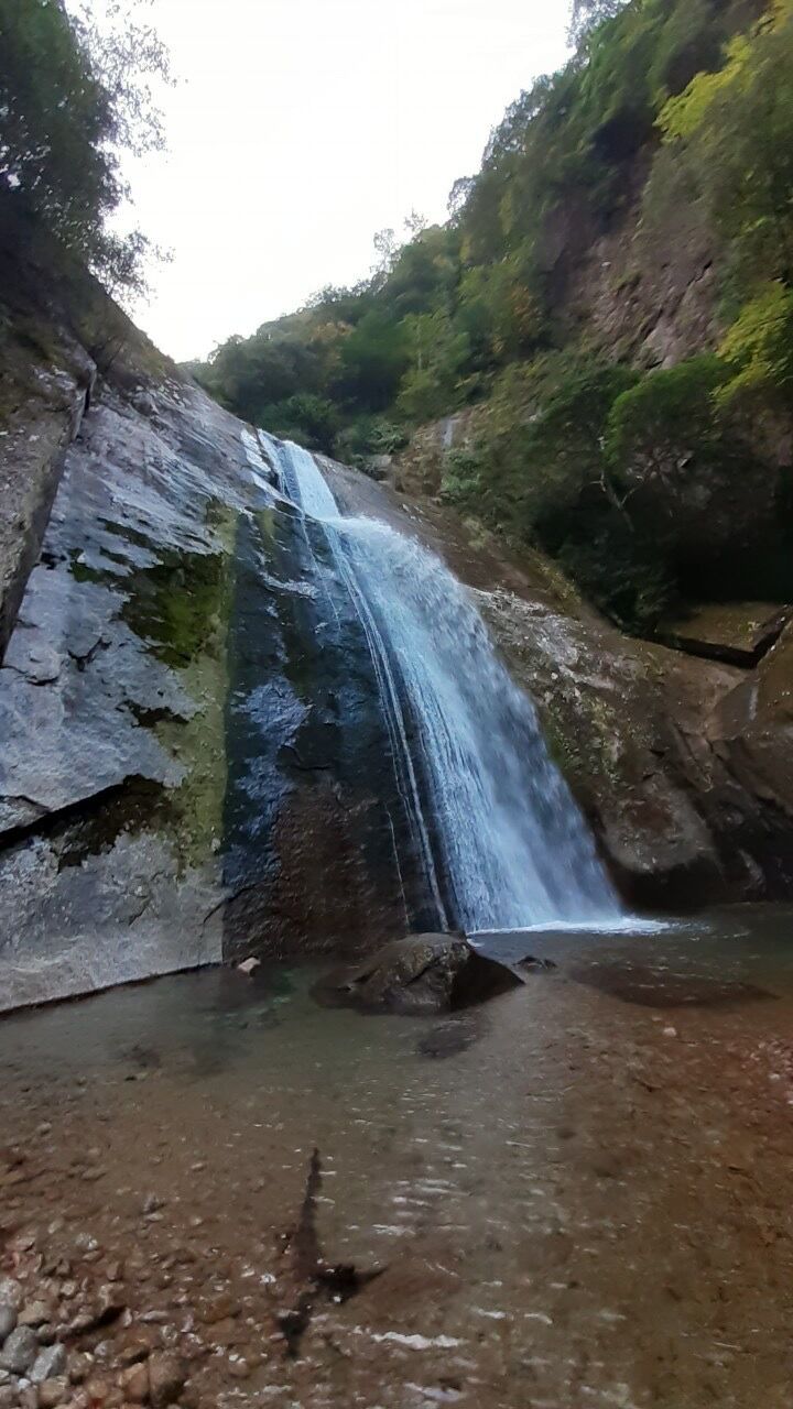 落ち口はナメになっており、そこから直ぐの場所に60m牛鬼滝が聳え立つ。